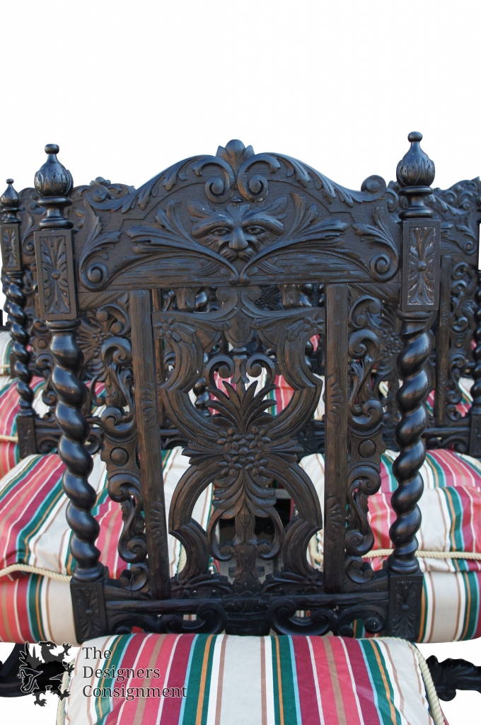 10 Antique Quartersawn Oak Black Gothic Barley Twist Carved Dining Chairs Throne