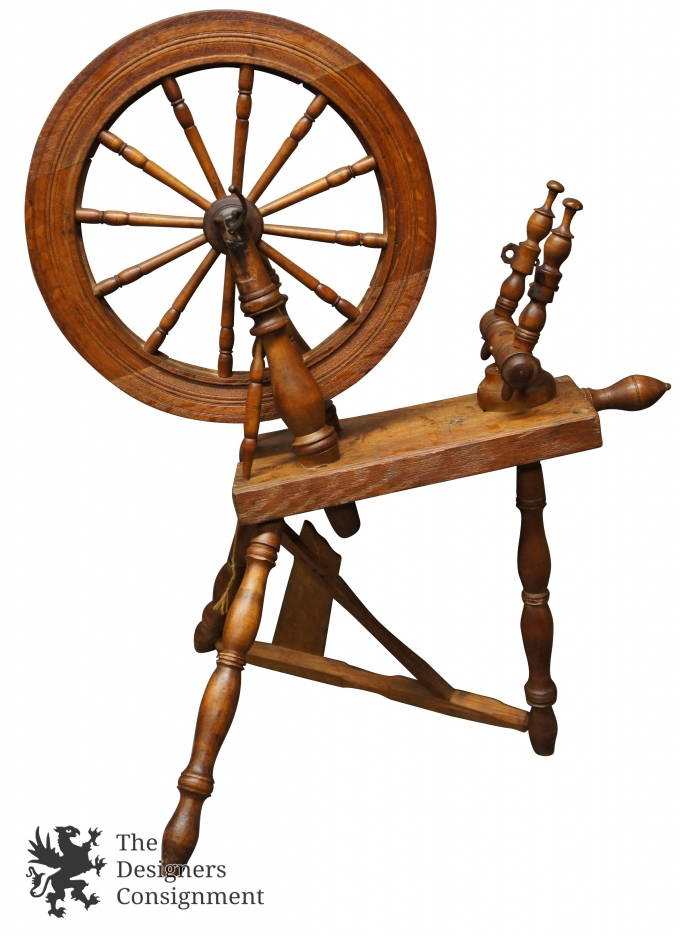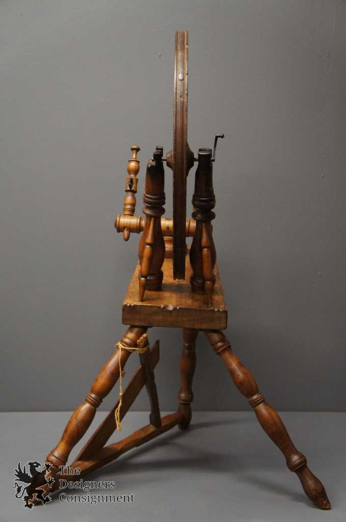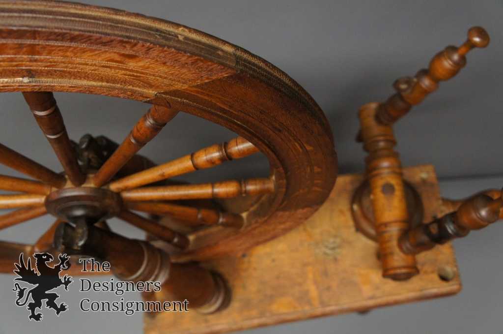 Antique Primitive Oak Treadle Spinning Wheel Spoke Flyer Sew Spool Whorl