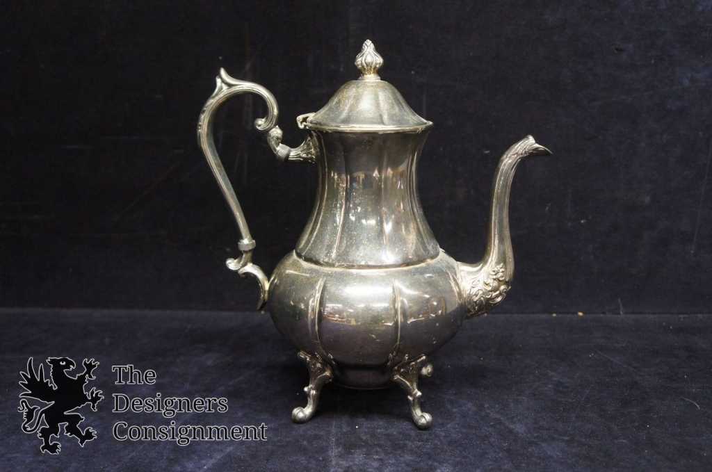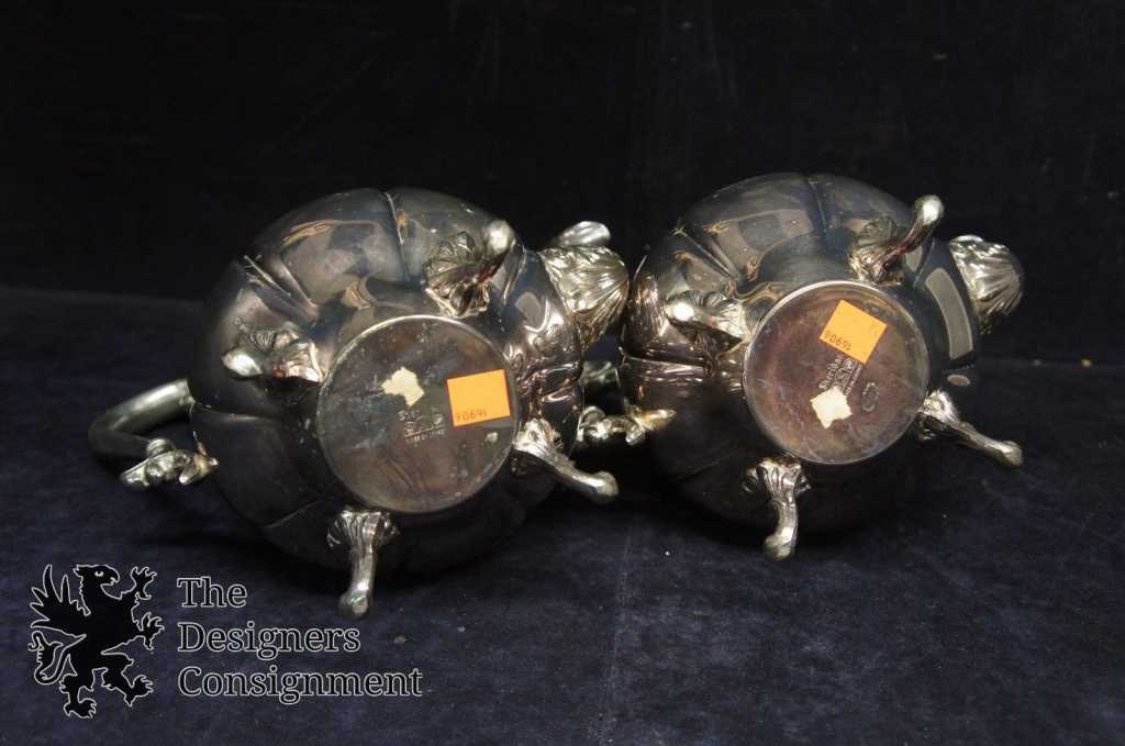 2 Vintage Sheridan Silverplate on Copper Footed Tea Coffee Pots Pitchers Drink