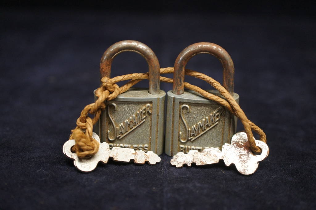 Small antique lock and key by Yale and Towne manufacturing company made of brass.