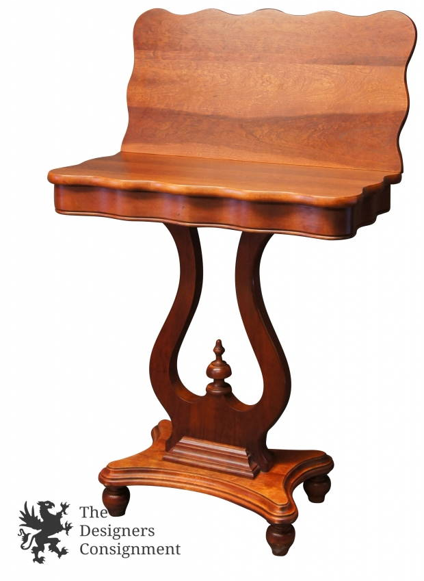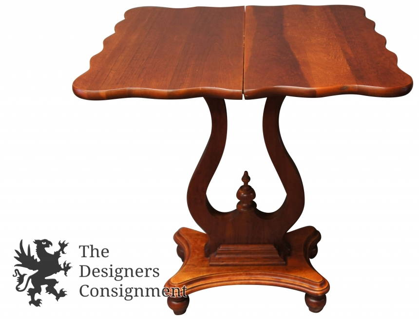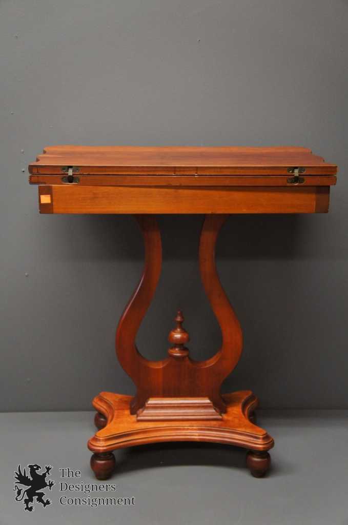 A beautifully designed accent table that swivels open for multipurpose or games. Made from cherry.