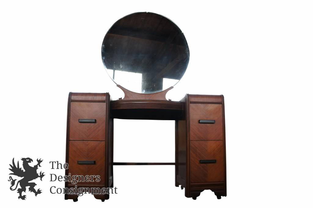 Circa 1920-30s. Produced by Johnson Carper out of Roanoke,Va. Features a nice V-grain pattern along the front and a large circularmirror. Surface Heights - 28" and 30"