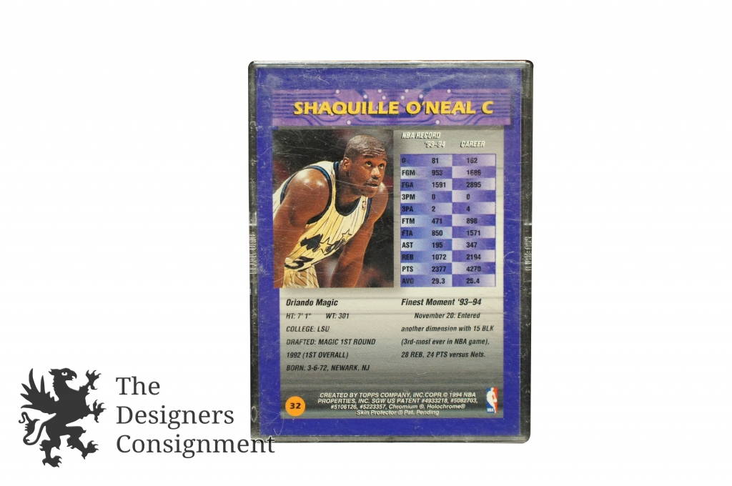 1994 Shaquille O'Neal Basketball Topps Finest Trading Card in Case NBA W/ Film