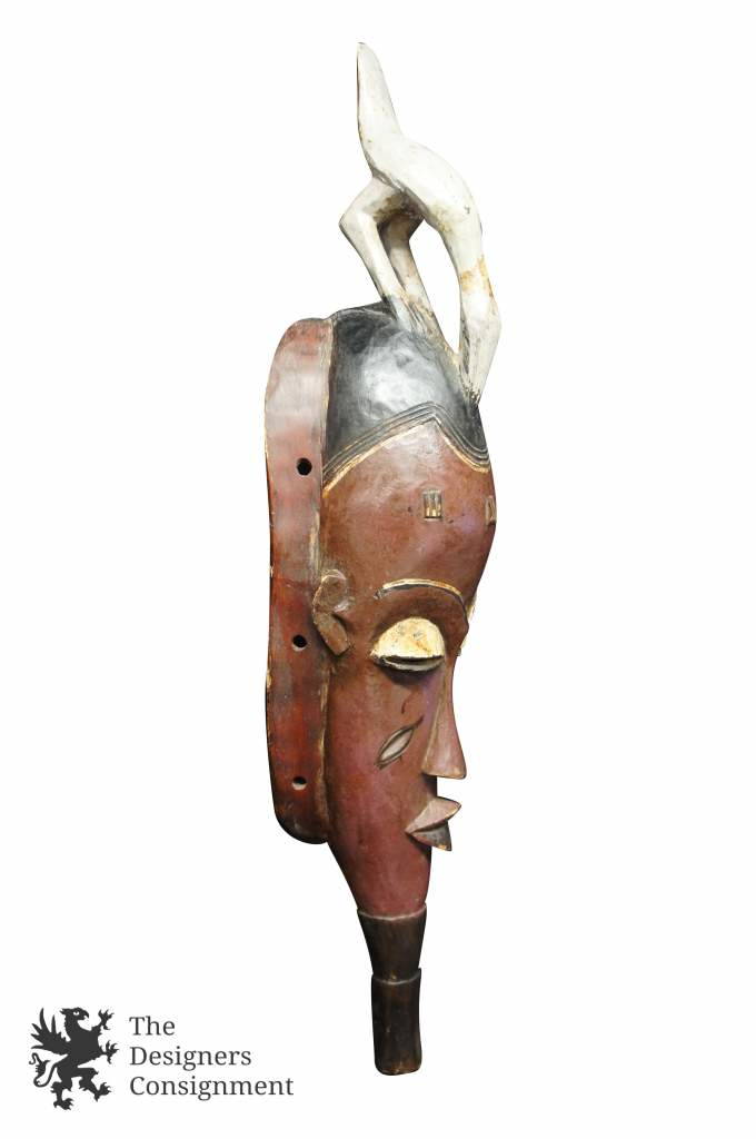 African Carved Wooden Mask Kalao Bird 26" Tribal Wedding Art Primitive Goatee