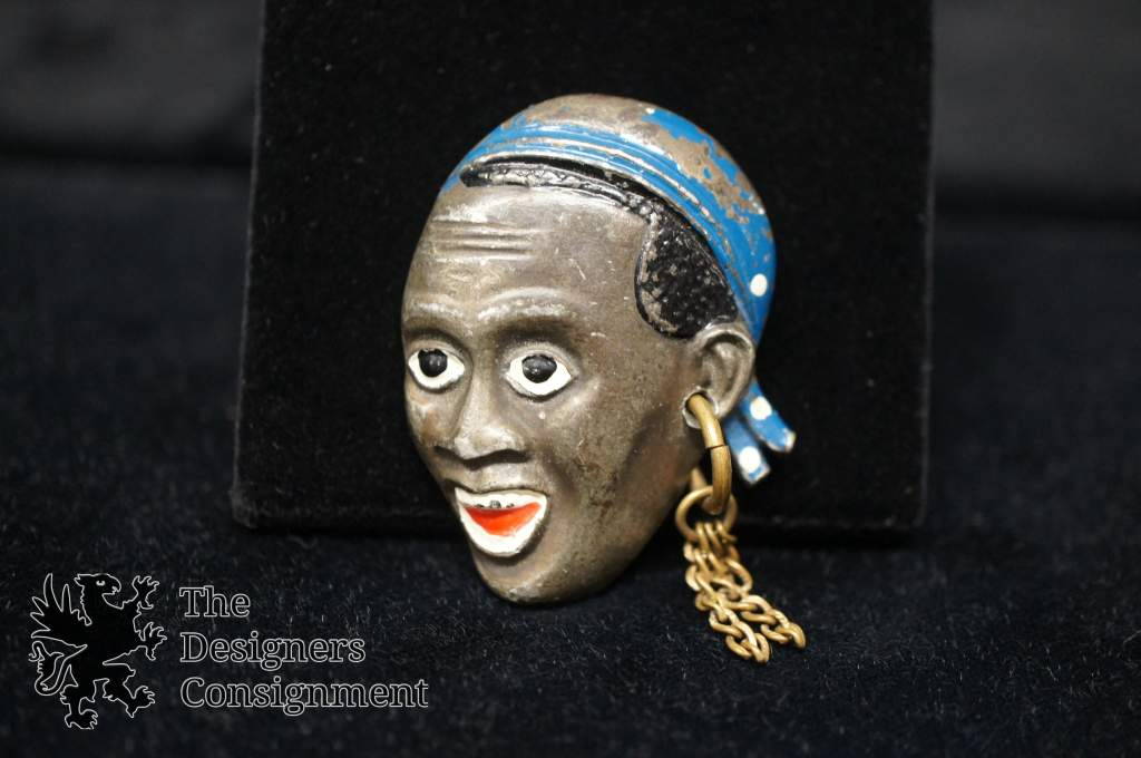 Art Deco Black Americana Amoor Enamel Brooch Pin African Man Pirate Bandanna