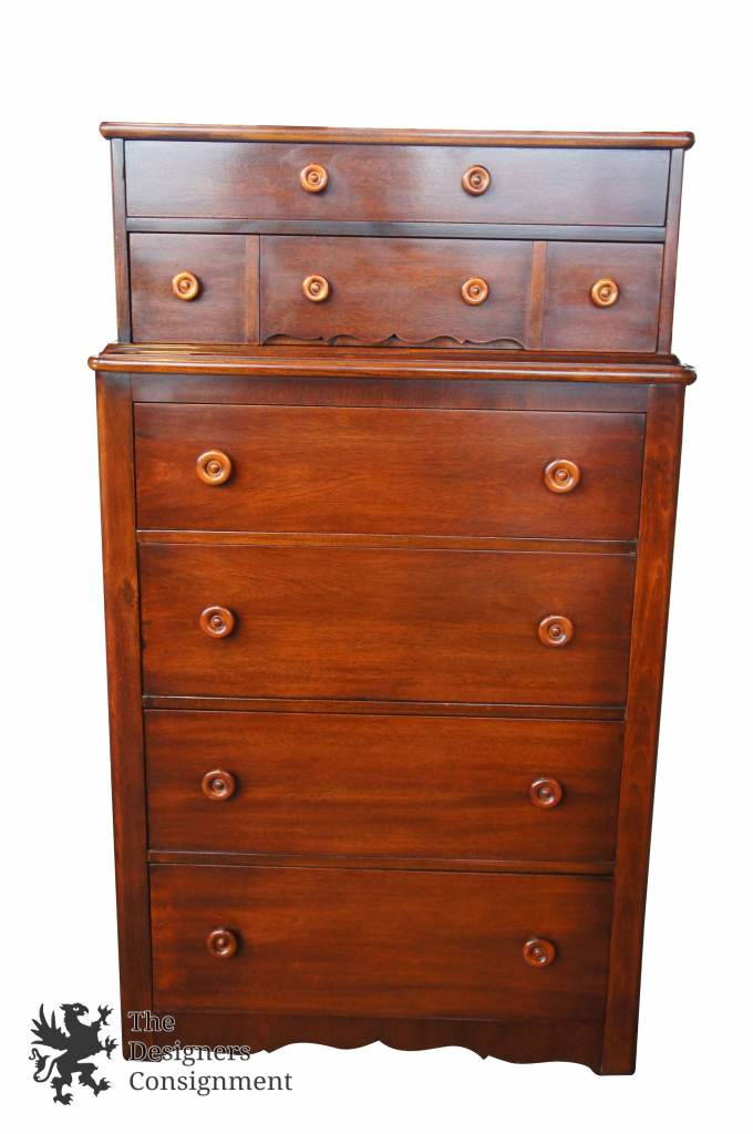 A rare find by Cavalier most often known for their cedar trunks and more modern furniture. This beautifulMahogany dresser was made in the 1940s with Early American Styling. A lovely reddishbrown finish. The bottom drawer is cedar lined. Perfect for any setting. Matching dresser + Mirror dresser available if interested.