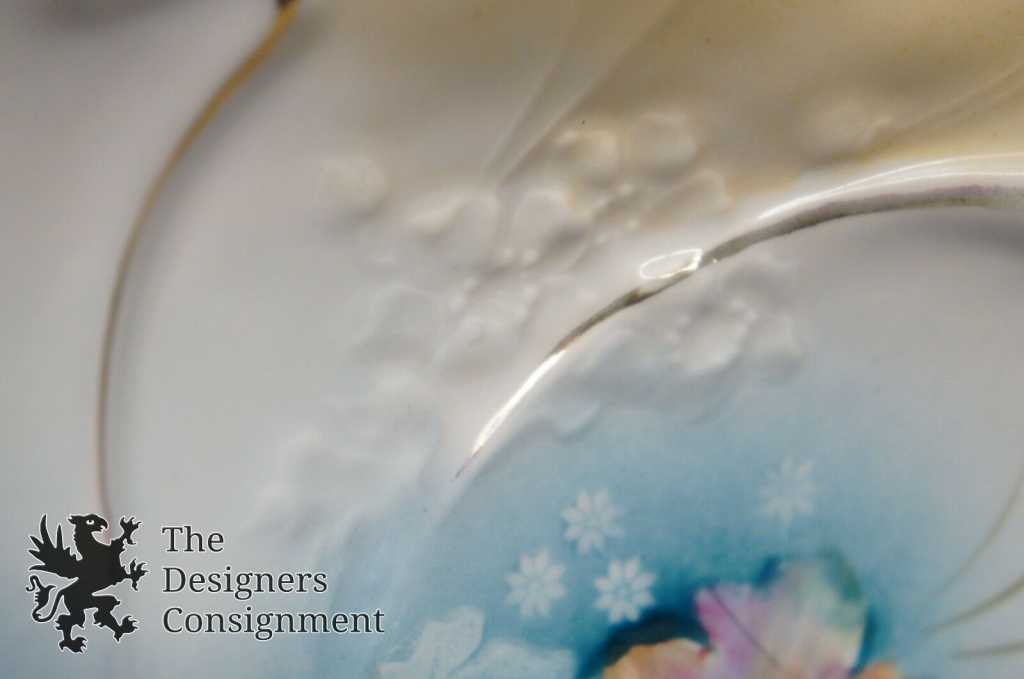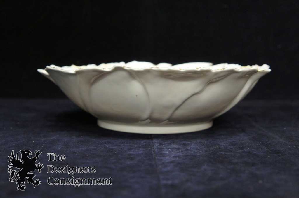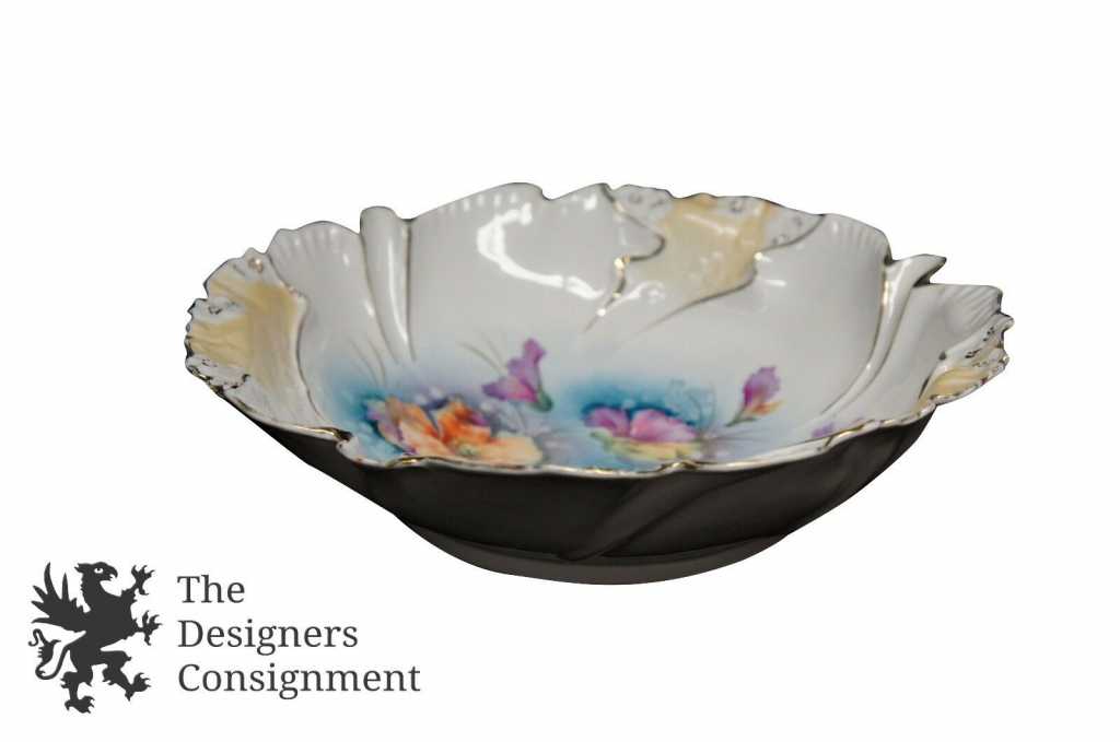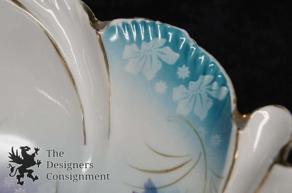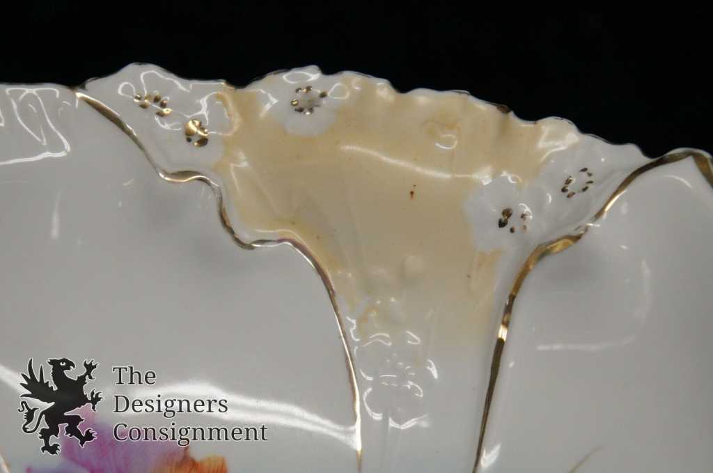 Flower Shaped Porcelain Bowl Gilded Edge and Petals Floral Painting