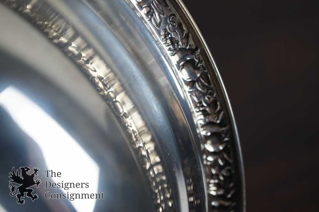 Vintage Silver Tone Serving Bowl with Apple and Pear Design 9" Repousse Candy