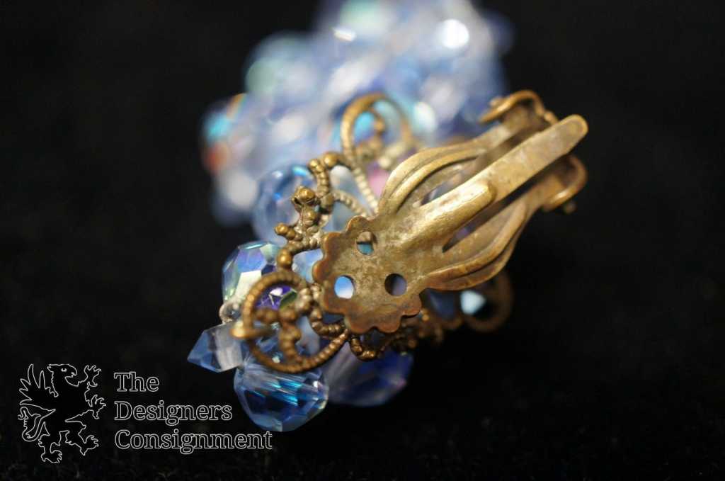 Vintage Iridescent Sky Blue Beaded Clip On Earrings