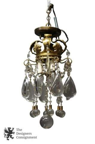 A beautiful brass mid century hanging light. Features hand made over-sizedSwedishdrop crystals as well as orbs and beads