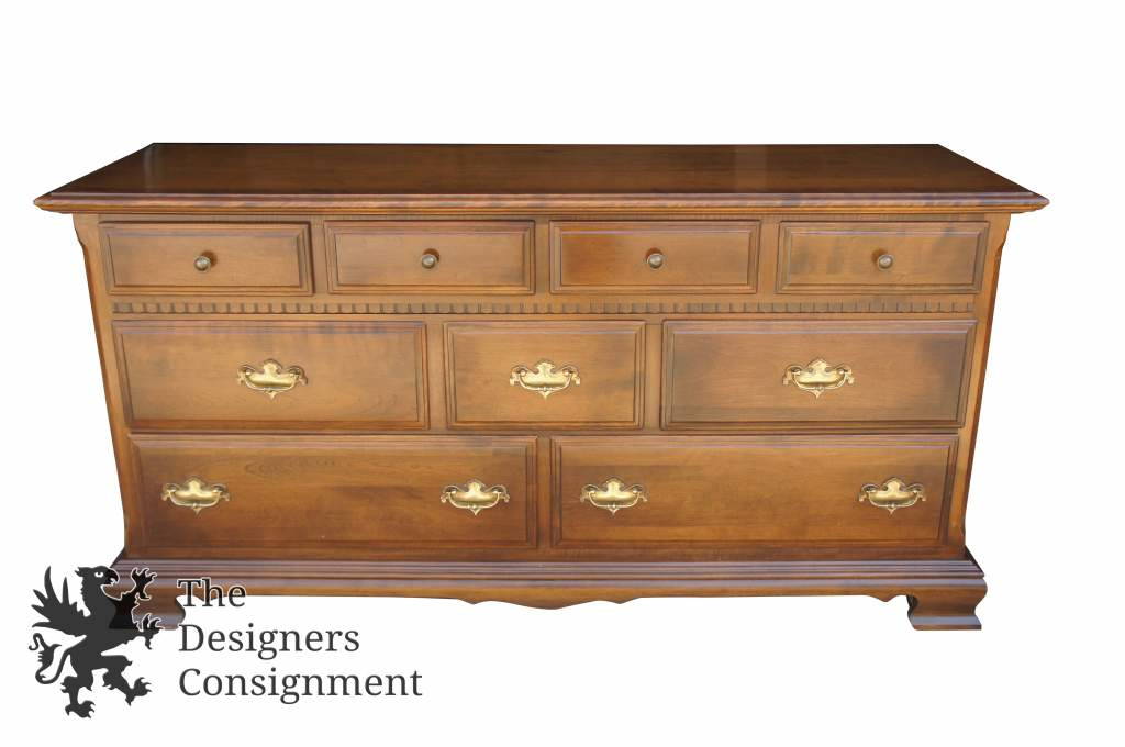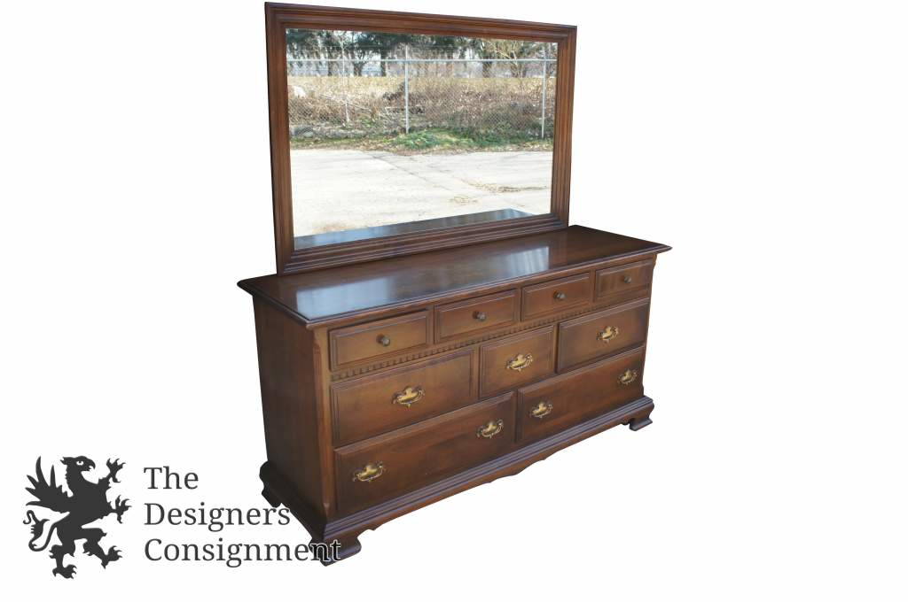 A great piece from Ethan Allen's Classic Manor Collection. Made from Maple in Colonial/ Queen Anne Styling. Features Castors beneath for ease of movement. The mirror is meant to be hung on the wall above the dresser.