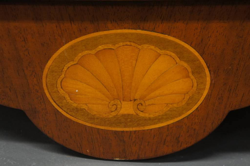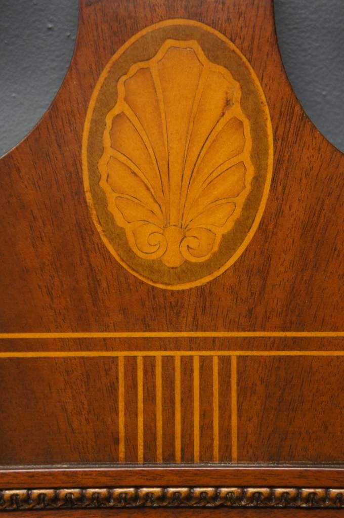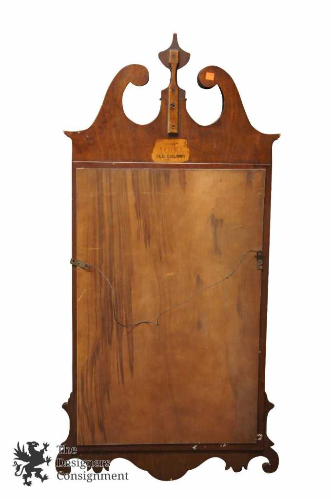 Mid Century Old Colony Sheraton Style Inlaid Flamed Mahogany Carved Mirror 46