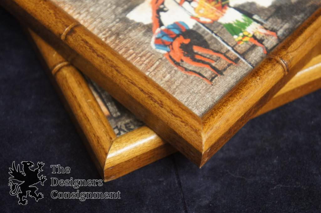 A fun pair of folk art landscape paintings. Features a village scene with mountains in the background.