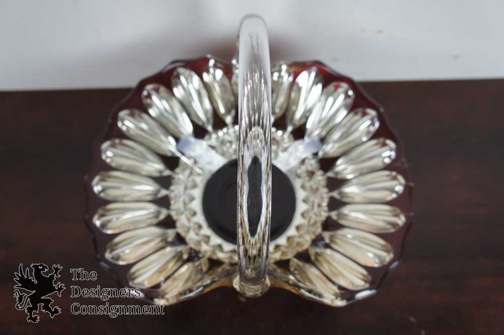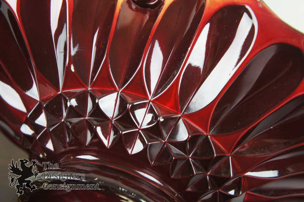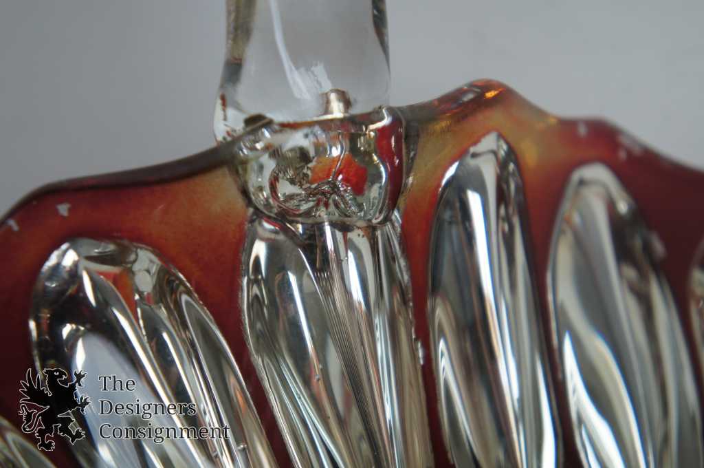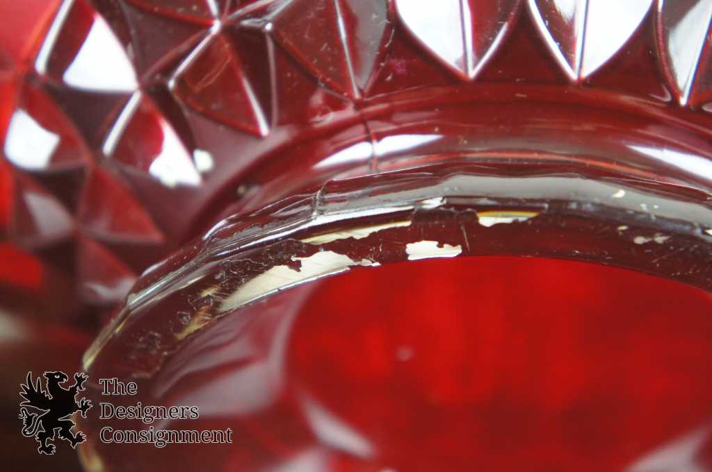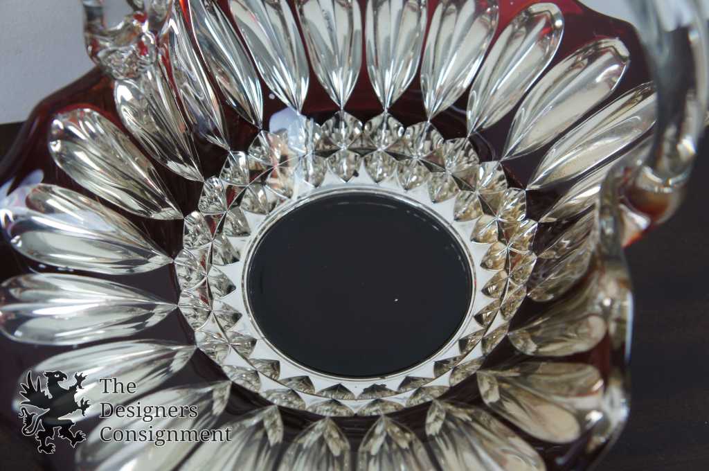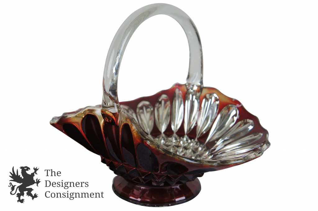 Vintage Crystal Cut to Clear Red and White Glass Bridal Wedding Basket Bowl