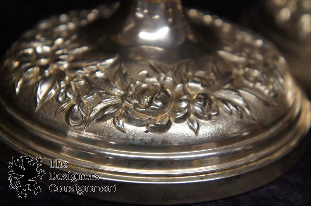 Pair S. Kirk & Sons Sterling Silver 1890 Repousse Weighted Candle Stick Holders
