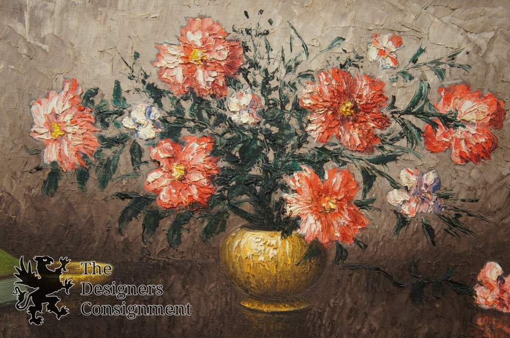 O. Pilenyi Signed Impressionist Still Life Oil Painting Flowers Violin Books 41