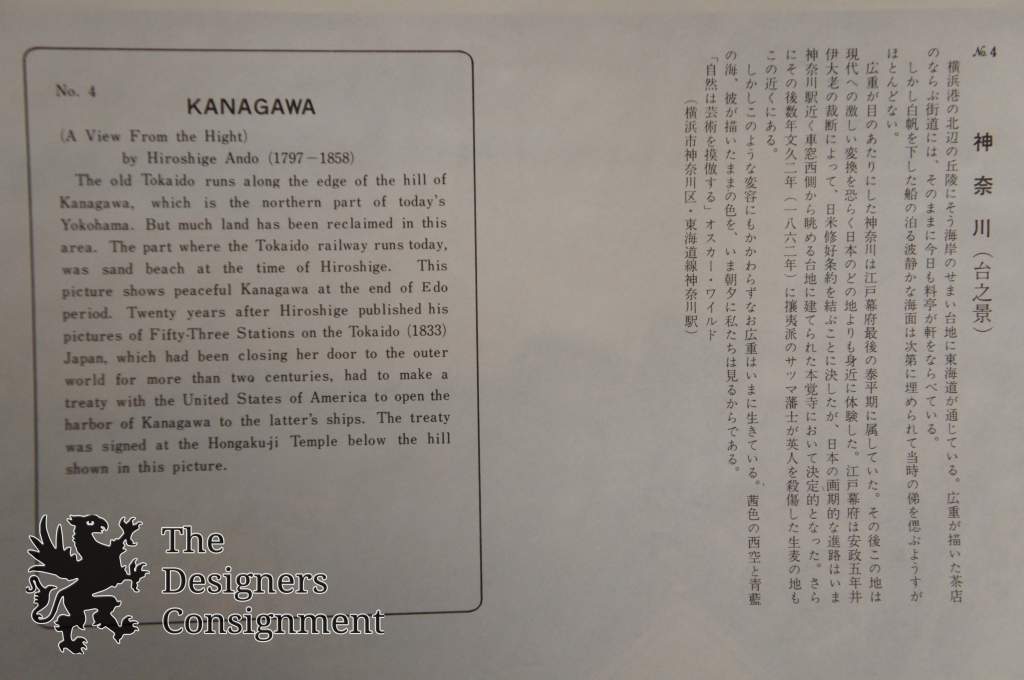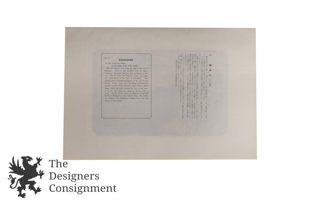In 1832 he made his first journey down the Tokaido highway, which resulting in his first great artistic success, the original Fifty-Three Stations of the Tokaido, a series which catapulted him to contemporary fame and success. This series is is now also universally held among the greatest of all Japanese landscape prints, and one of the two best series he ever did.