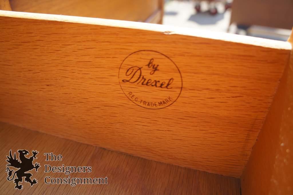 Campaign Style Dresser made by Drexel for their Compass Collection. Walnut with brass hardware. 6 drawers with a mirrored top.