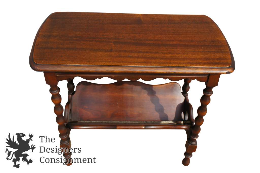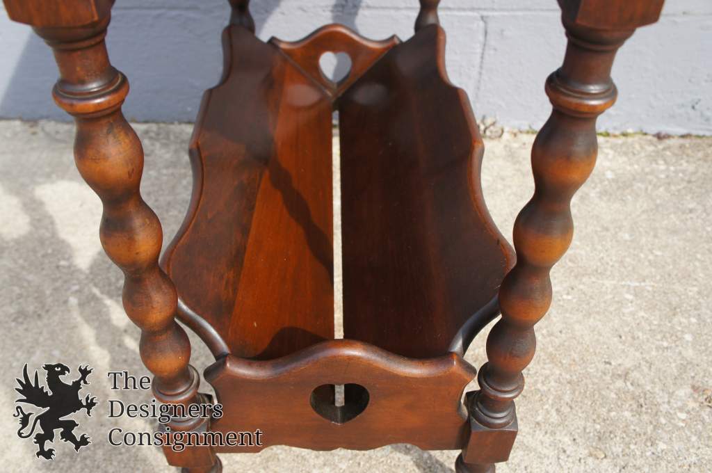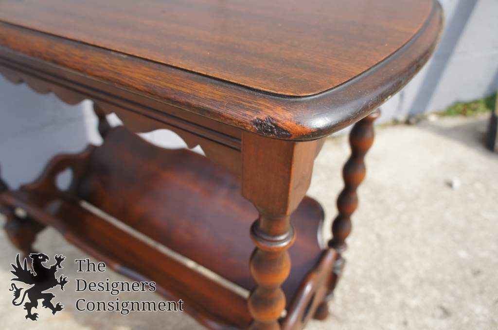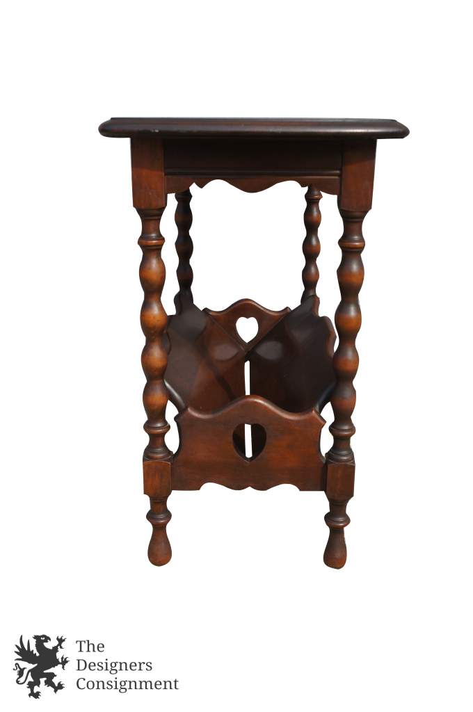 Spindle caved posts and scalloped trim. A lower trough for magazines or books.