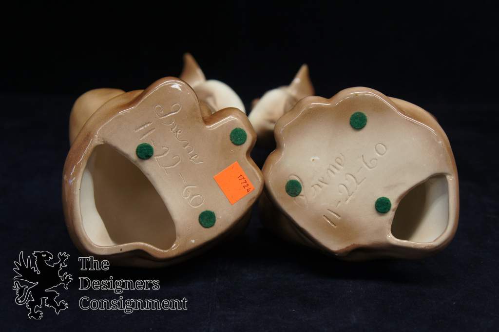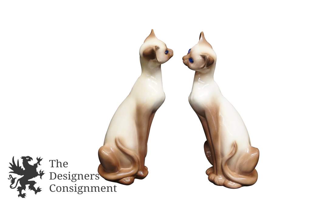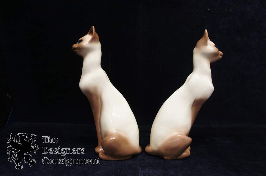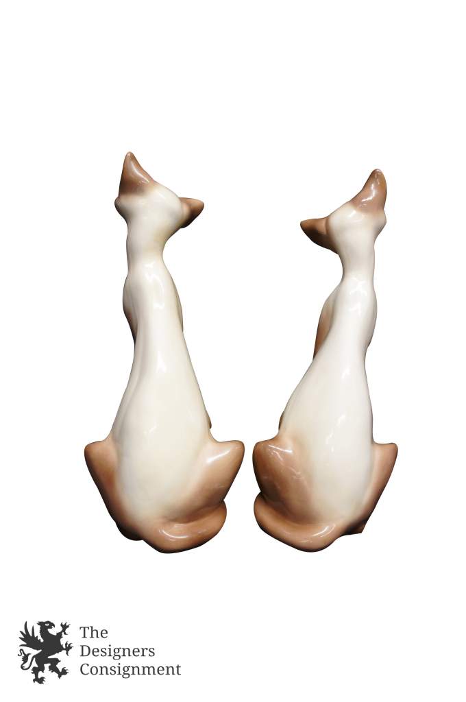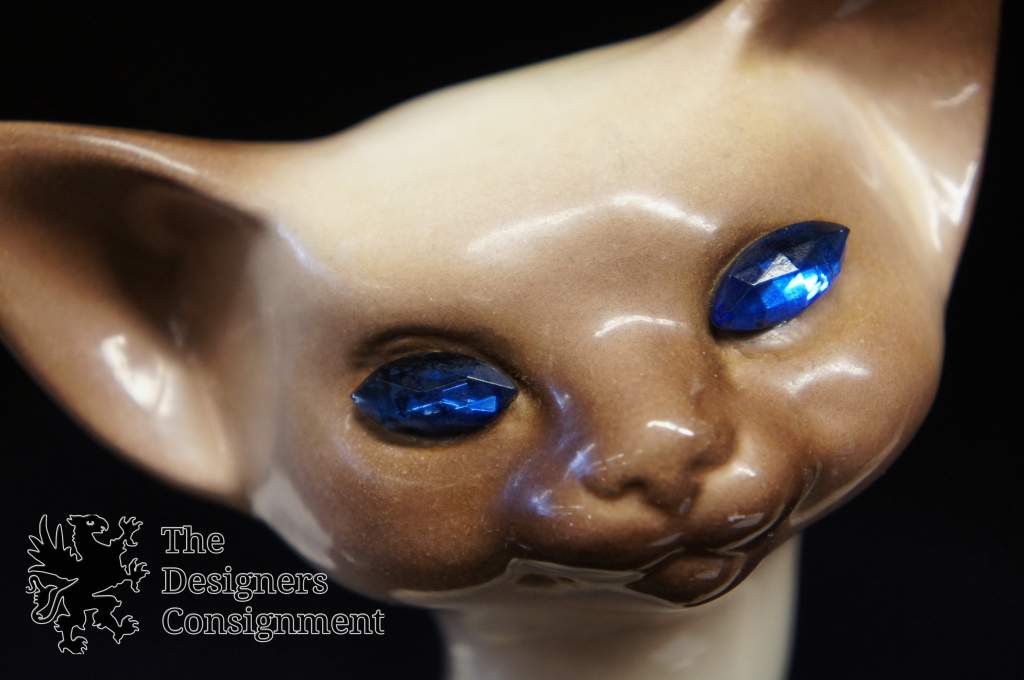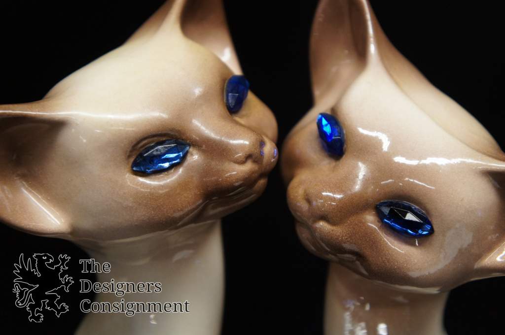 2 1960 Handcrafted Ceramic Siamese Cat Figures Mid Century Modern Jeweled Eyes