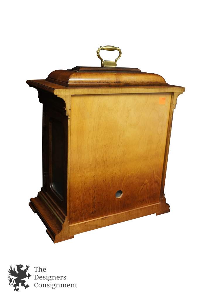 Rare olive ash burl veneers on the door and hand painted gold decorations accent the case.