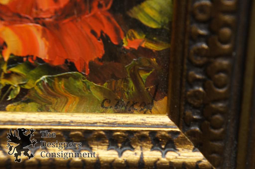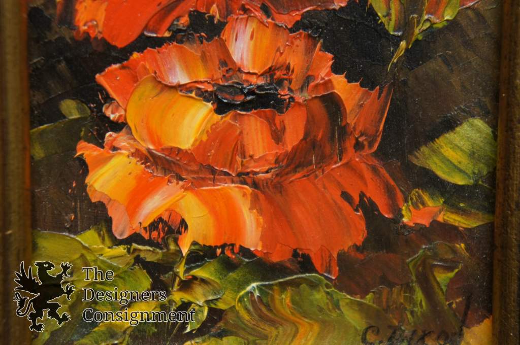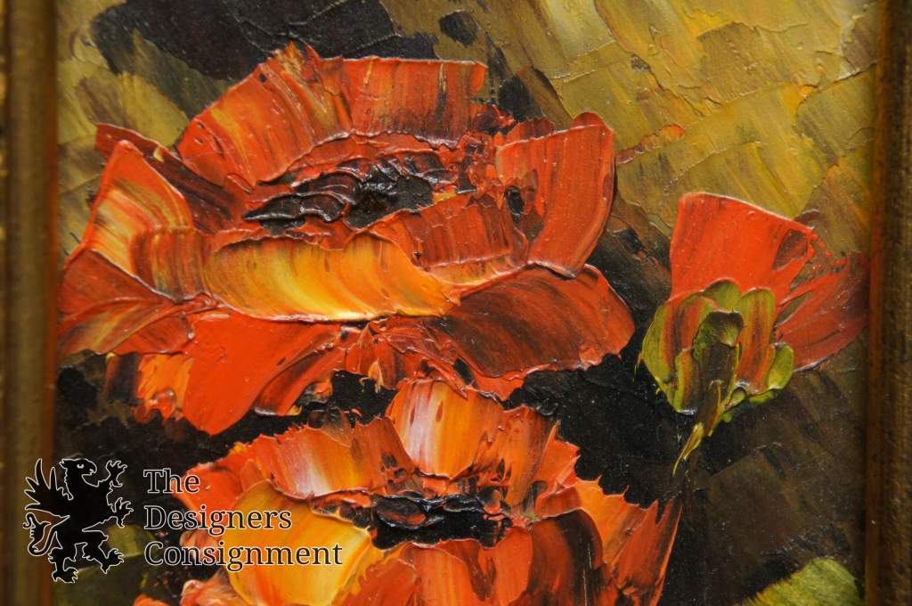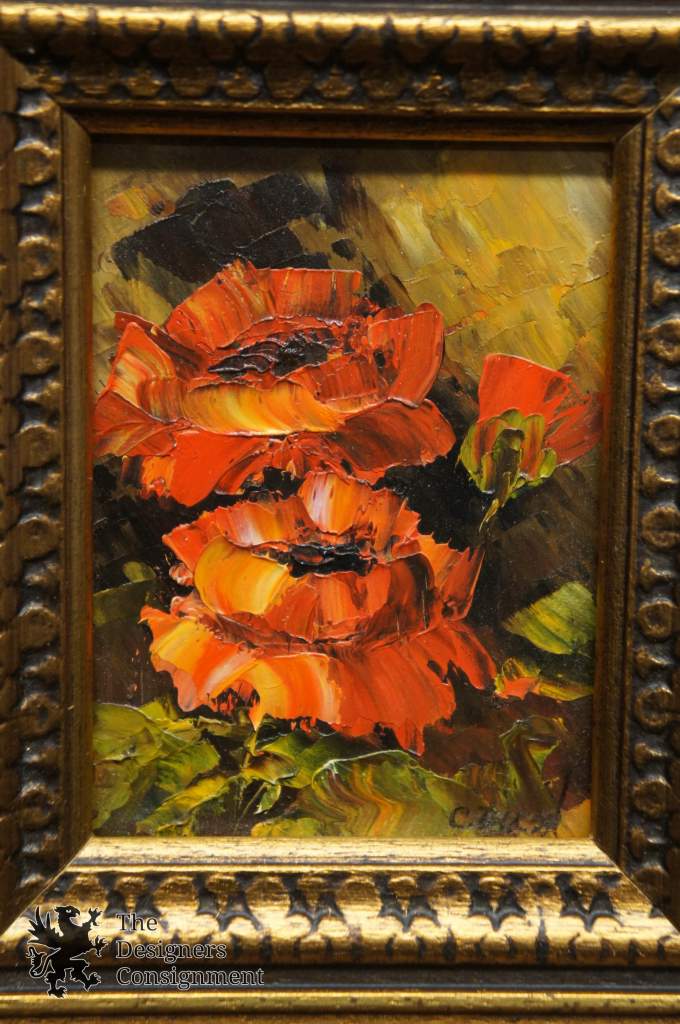 Vintage C.Dixon Signed Oil Painting on Board Poppies Flowers Gilded Frame
