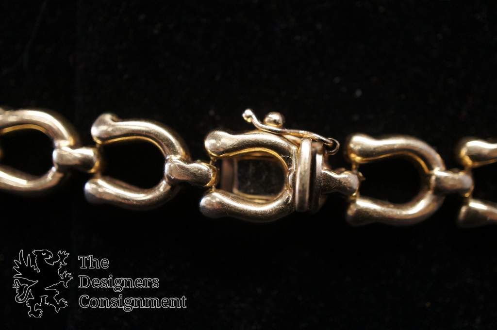 A lovely bracelet for any equestrian fanatic. Chained horseshoes in yellow gold.