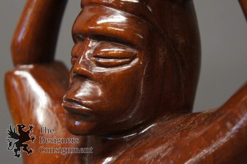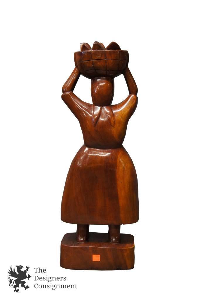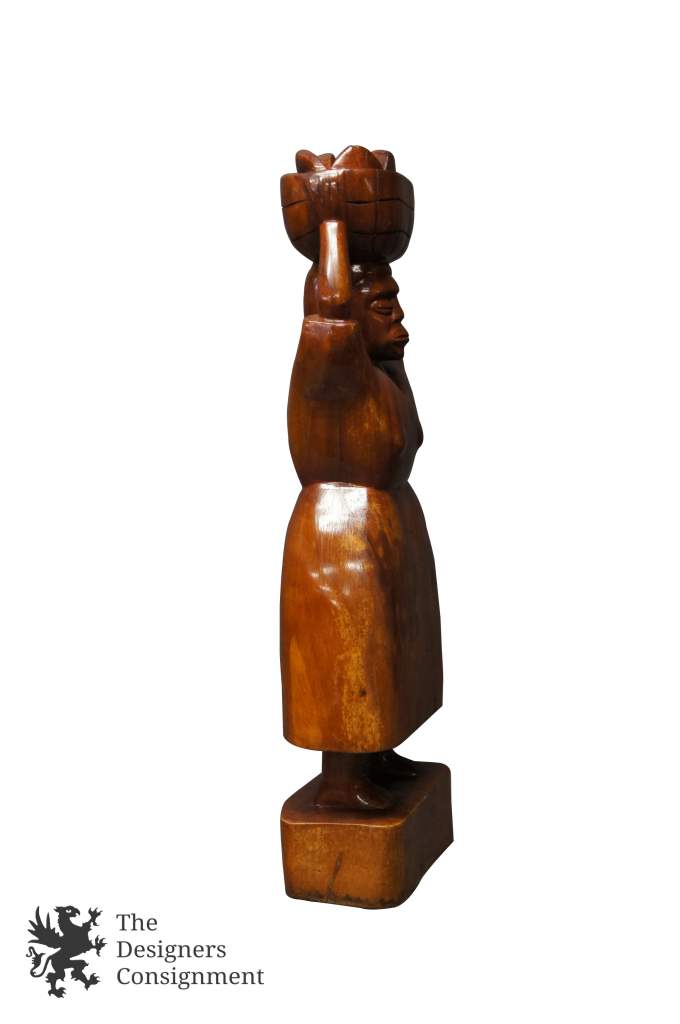 African Folk Art Hand Carved Female Figure Carrying Fruit Basket Varnished 352330695325