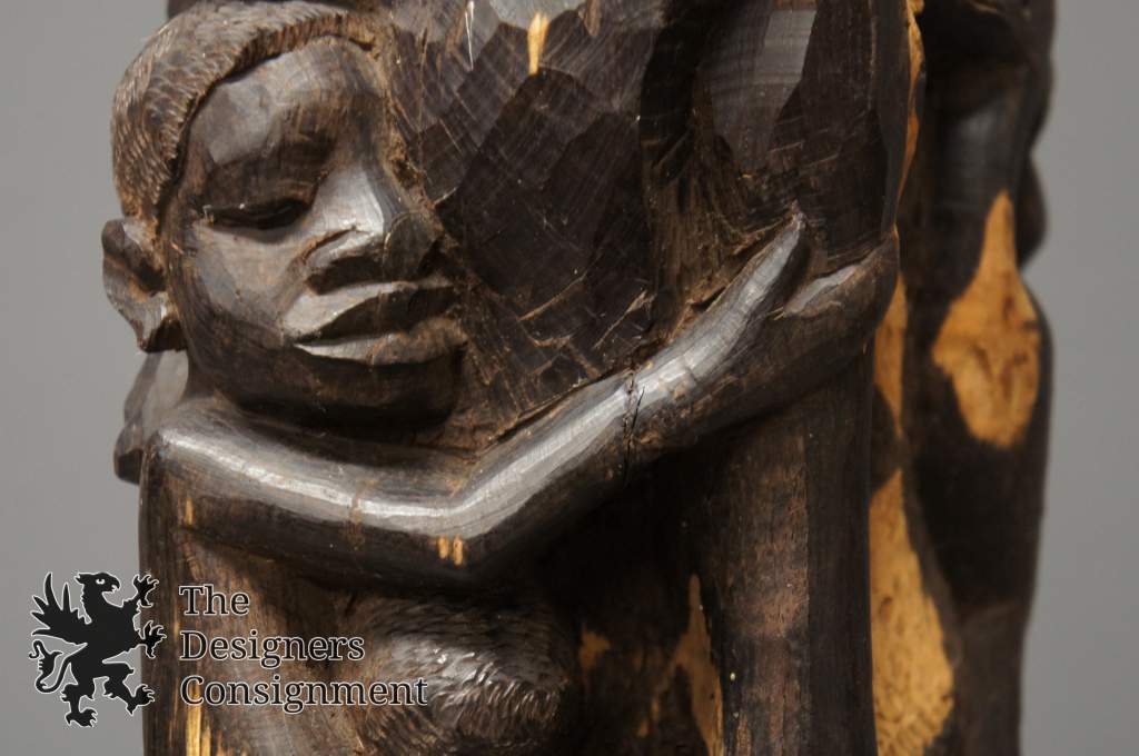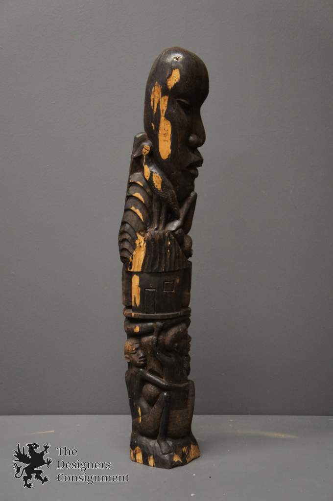 Intricately hand carved ebony figure. Each Tree of Life figure is unique to its own, as they cannot be exactly reproduced. Approximately29" tall. Great for display.