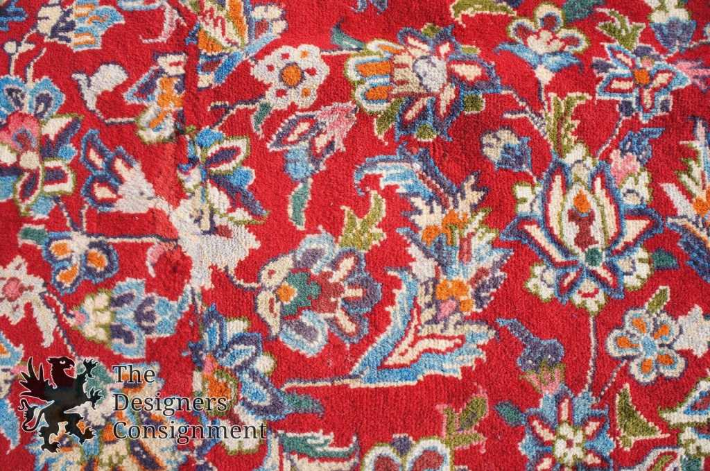 Gorgeous hand knotted kashmar area rug. Vivid red pile covered in blue floral designs. A nice big medallion. Very durable, and will last a life time.