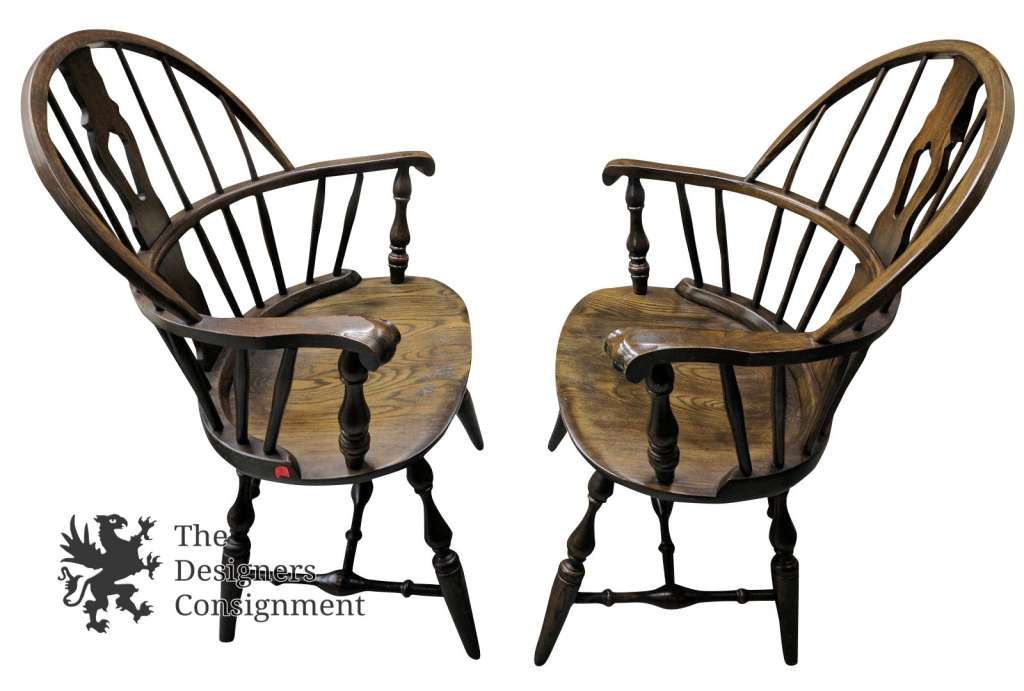 Beautiful pair of primitive style sack backWindsorstyle arrow pointknuckledarm chairs. Pattern 725-750. Finished in distressed Oak. Will be hand delivered via White Glove Service.