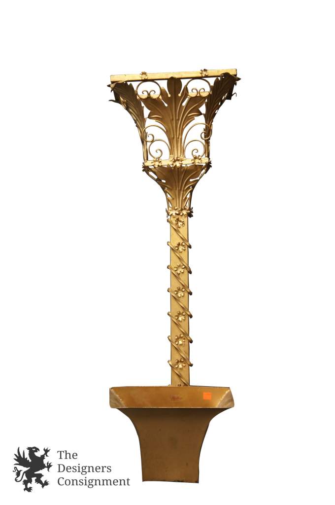 A neat Hollywood Regency style brass wall hanging sconce. 41" with floral detail. The upper tray removes for planting floral arrangements.