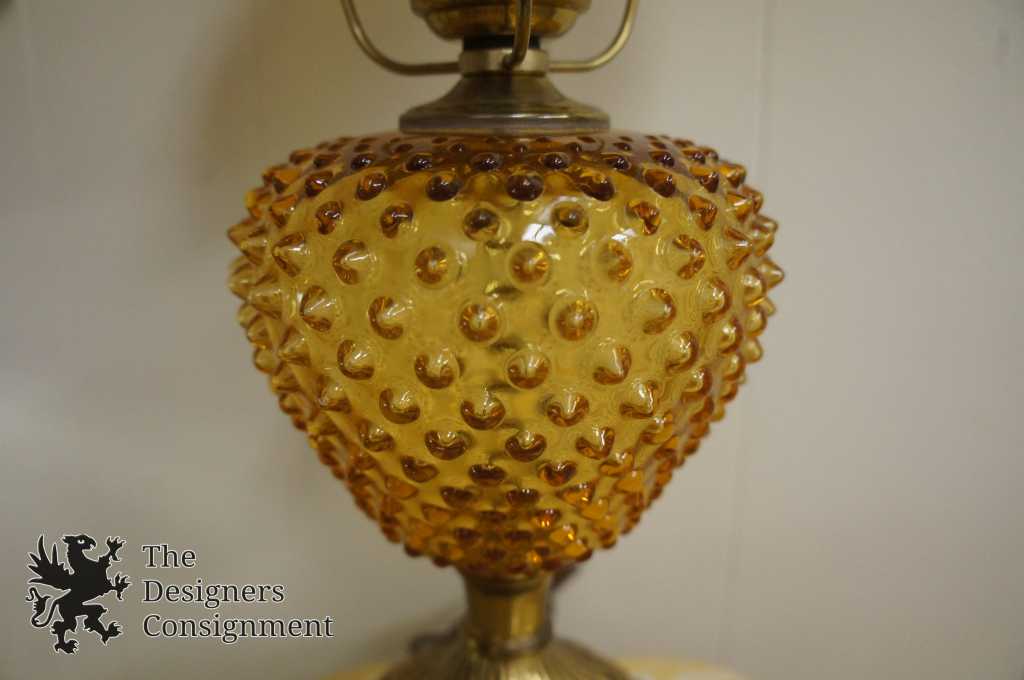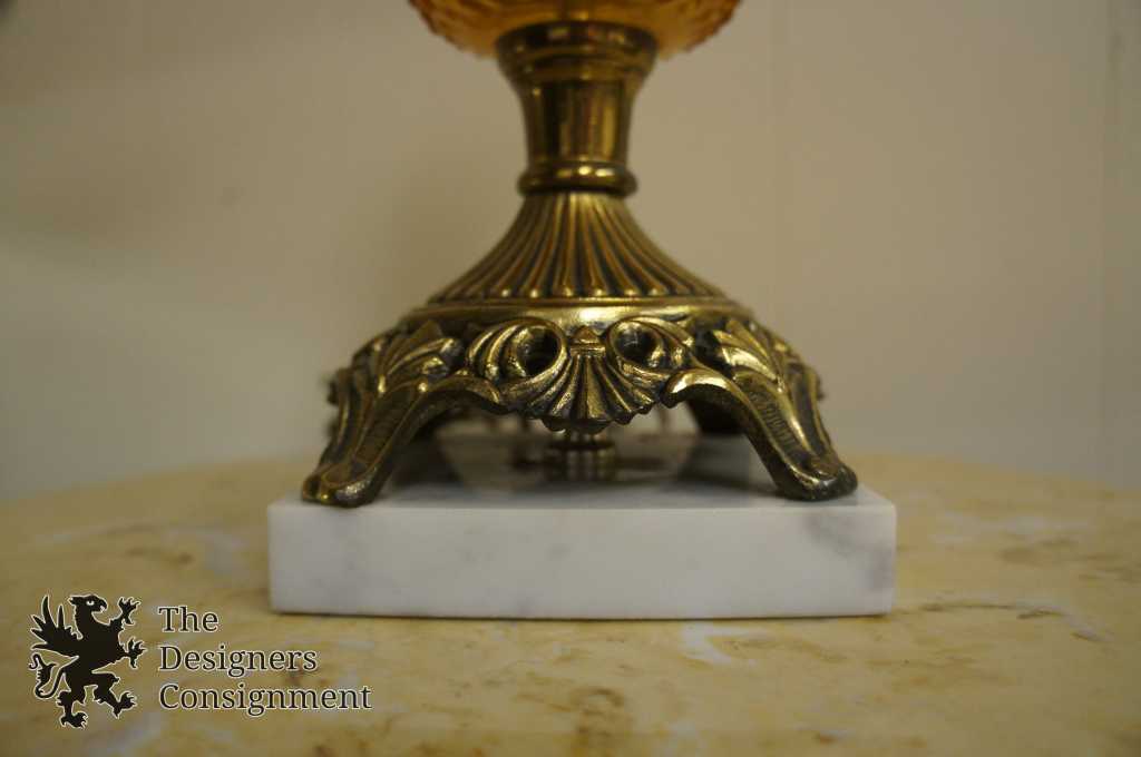 Vintage Amber Hobnail Glass Electric Table Lamp Oil Style Brass & Marble Fenton? 222925167479