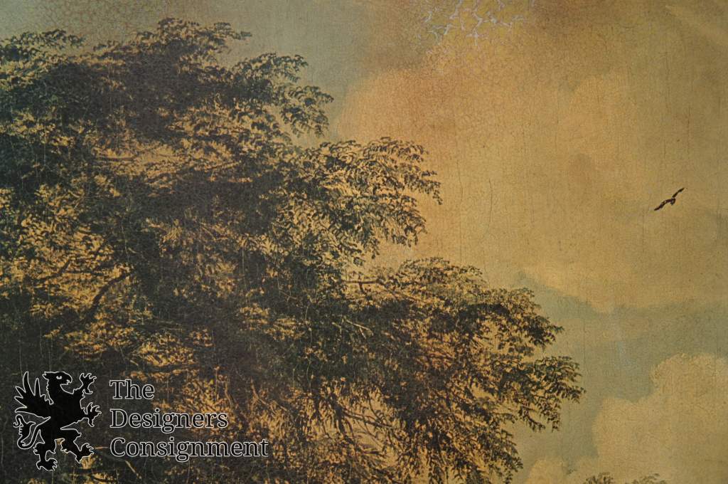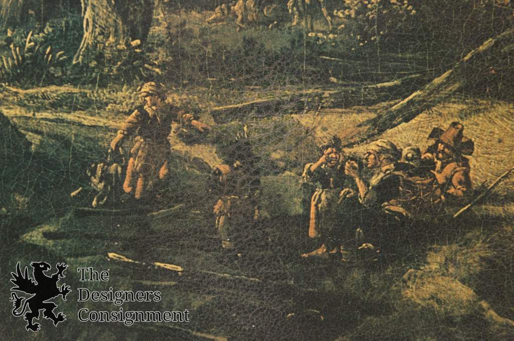 Vintage landscape printed on board. Figures can be seen on the bottom left with relaxing with dog