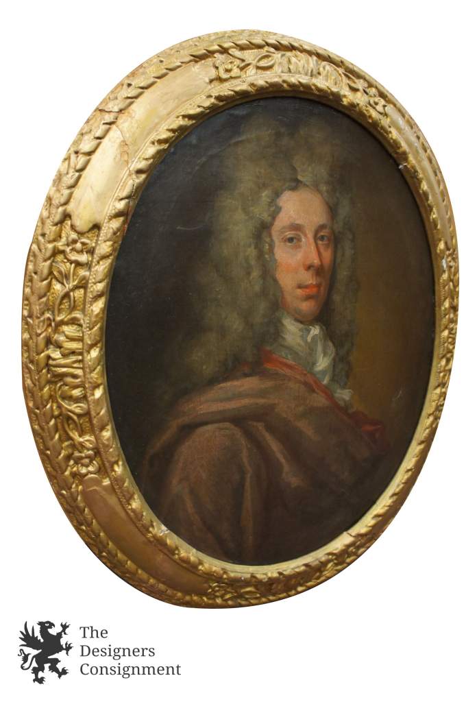 This piece is attributed to Sir Peter Lely (1618-1680). He was active in the united Kingdom, England, Netherlands and Germany. Most Notably known for portraits and figure paintings. Features Bust height portrait of a Gentleman in Colonial attire. The frame is made of wood with carved gesso frame. On the lower back portion the painting is marked Doctor William. The last name is not translatable. Nonetheless a noble subject.