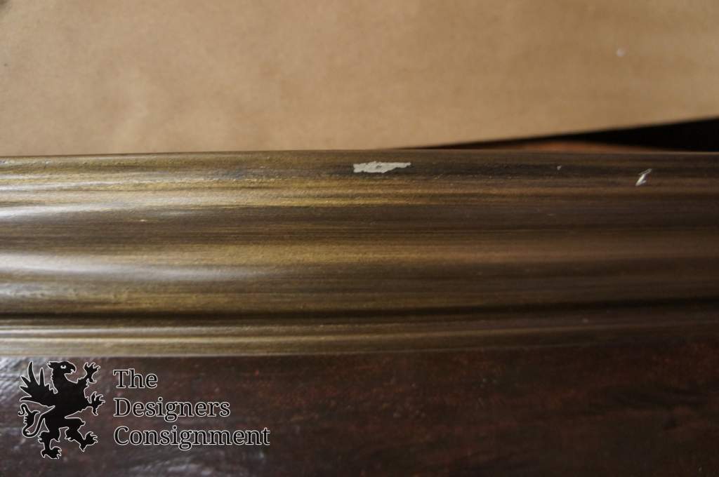 No repairs or damage. Has been relinedwith new stretchers. Frame is newer. Some marking and finish loss to frame.