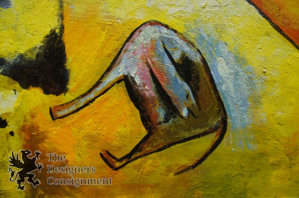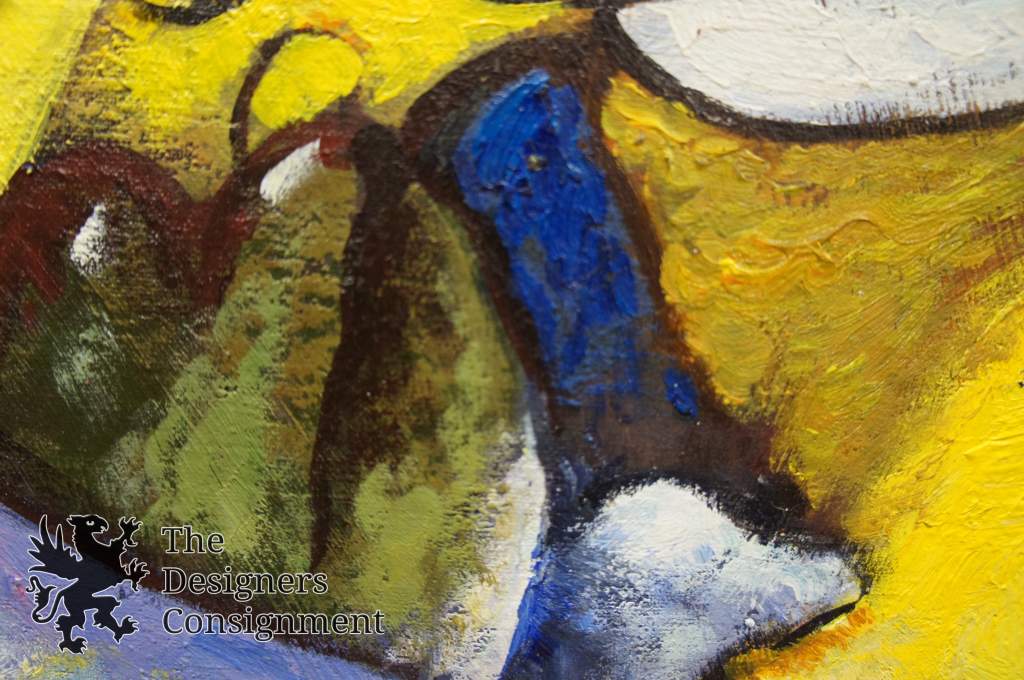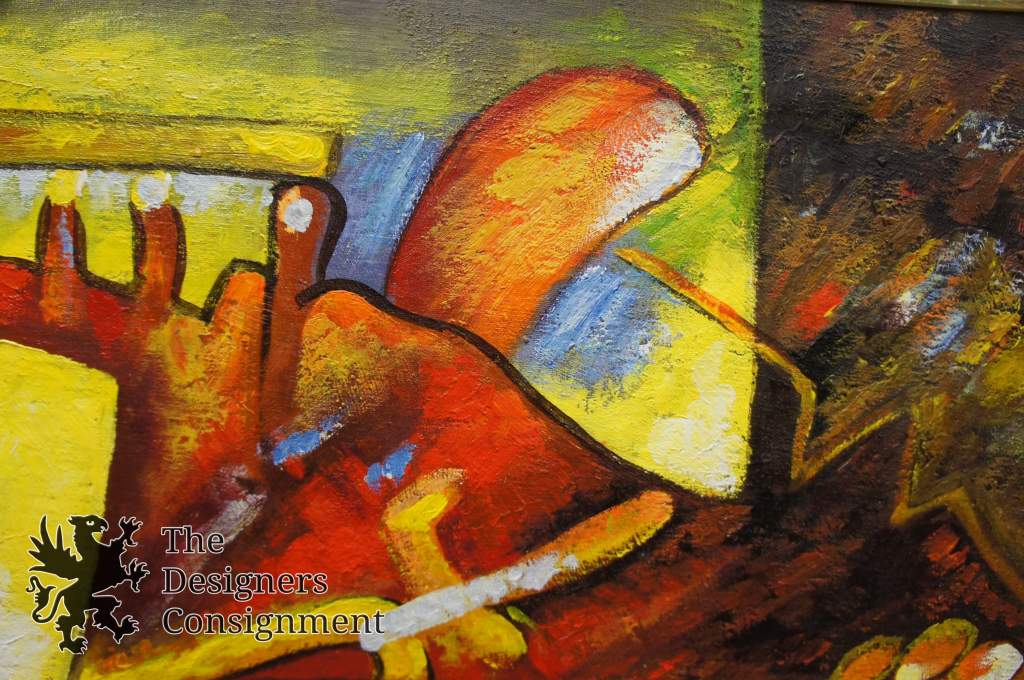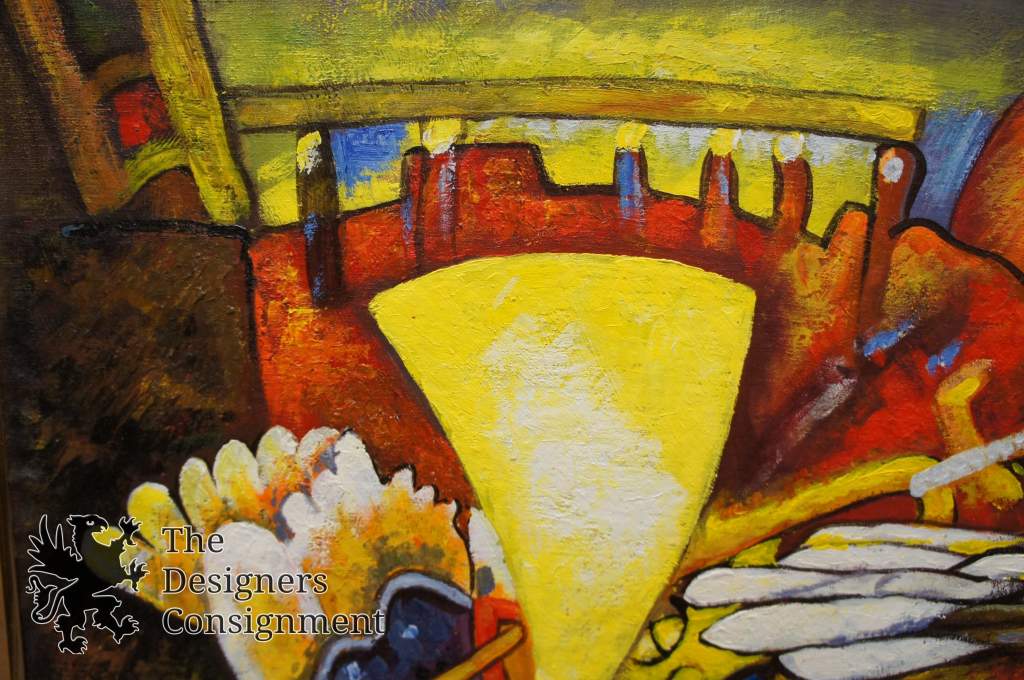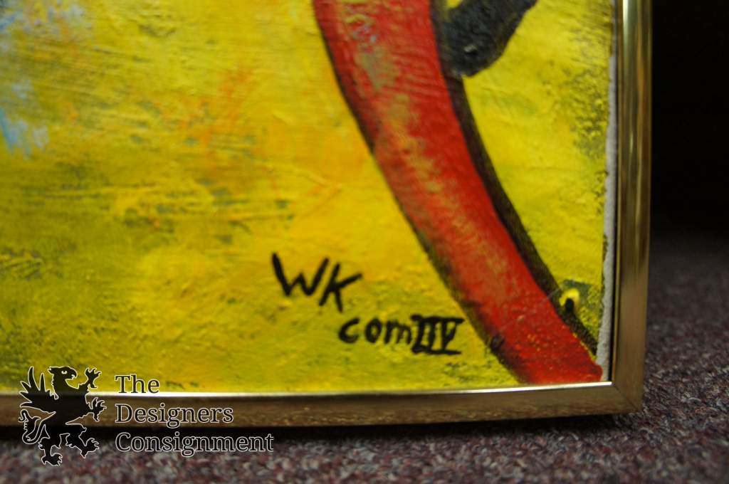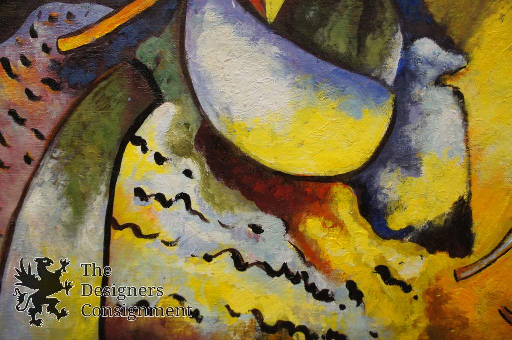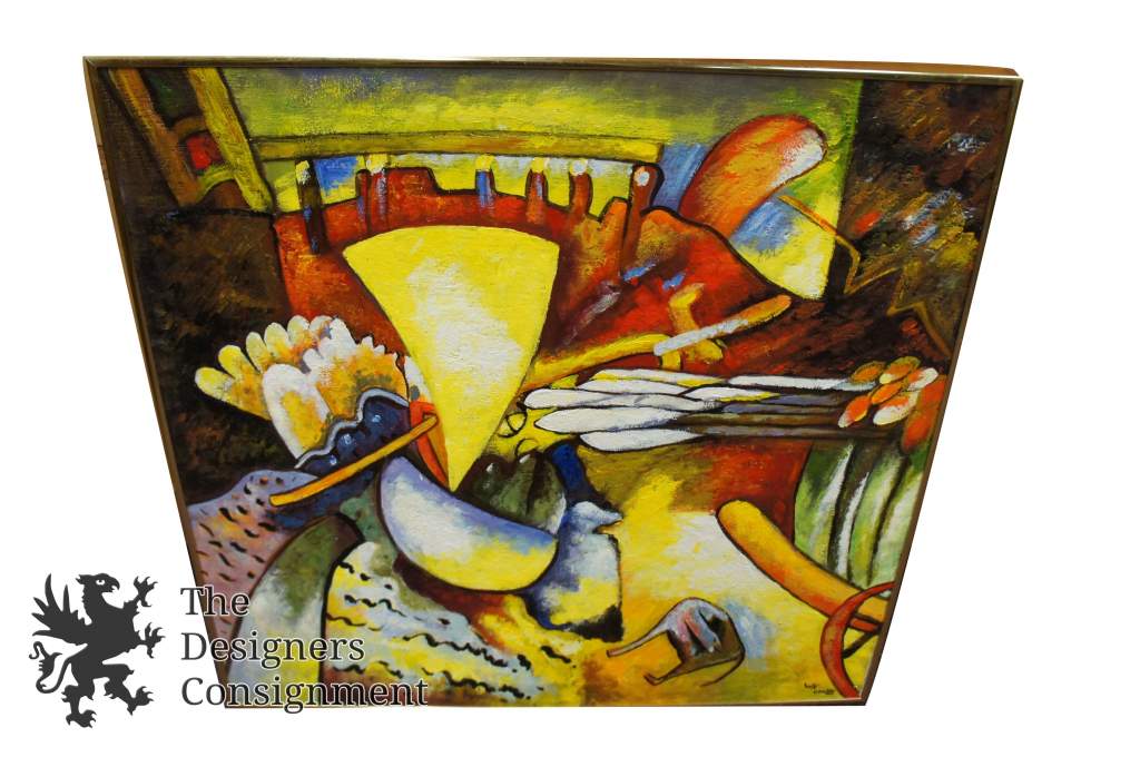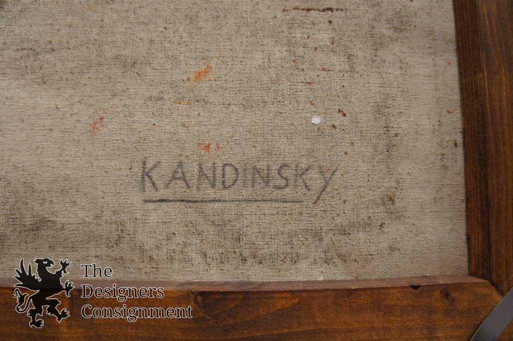 A beautiful oil painting done after the famous Wassily Kandinsky's Improvisation 11 (1910). Artist unknown.Signed WK Com IIV. The lines are a bit smoother than the original, which can be seen in the last photo of the listing. Framed in a thin brass frame.