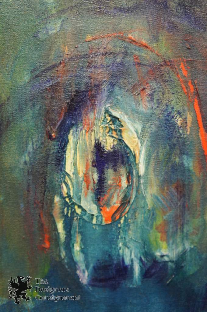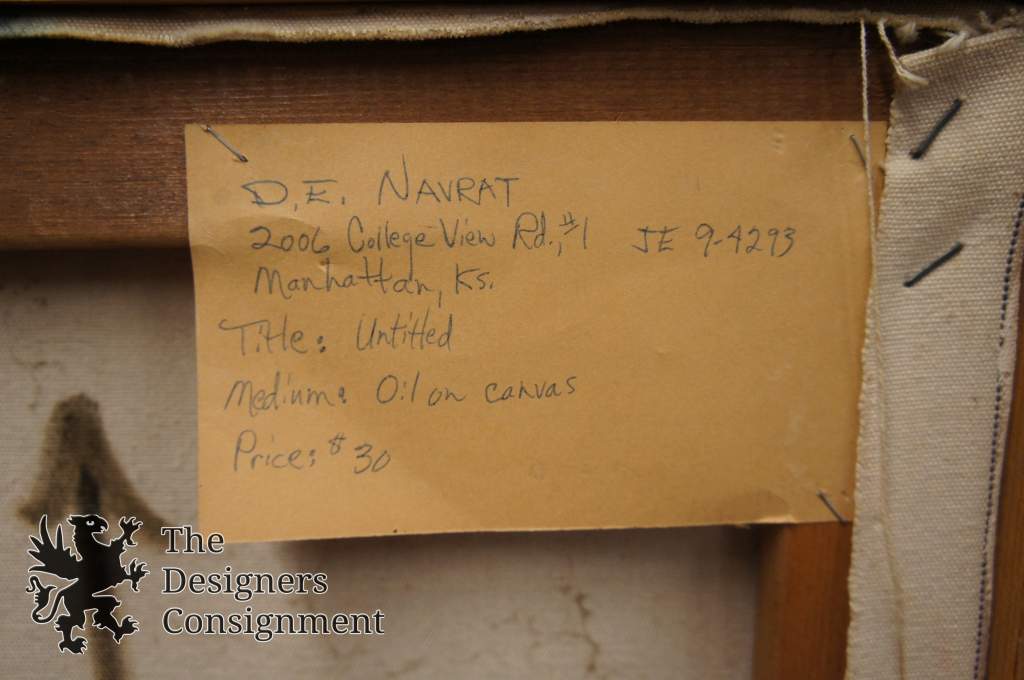 The piece at hand was an early painting by Dennis. Painted in 1963, before he graduated from Kansas State. The title is Untitled, and his original address is still on the back. In fact that residence still exists at the school.