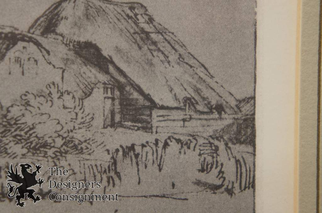 A beautiful reprint of one of Rembrandt's line drawings. Features a country scene. Finished in an olive ashwood burled frame