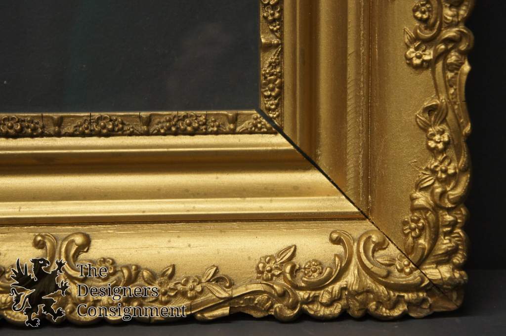 Abeautifullygilt frame. Made from wood with gesso in an aesthetic period style.