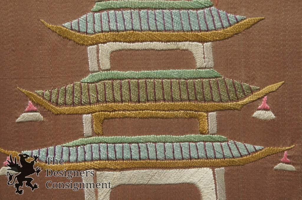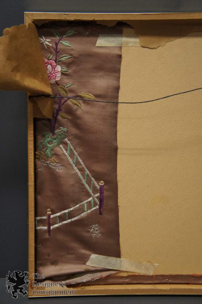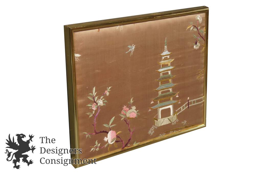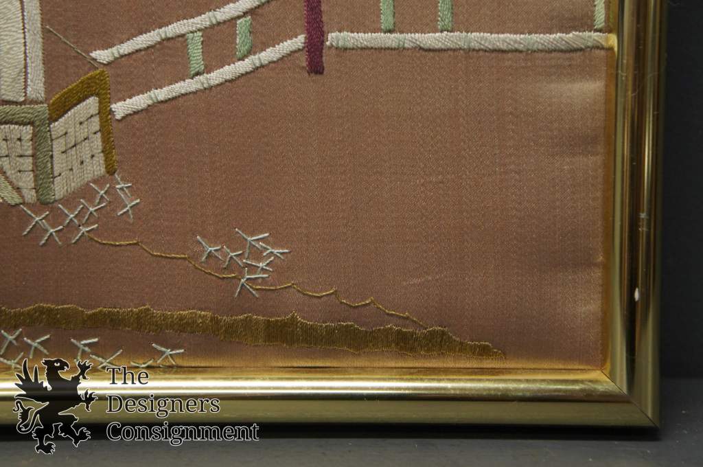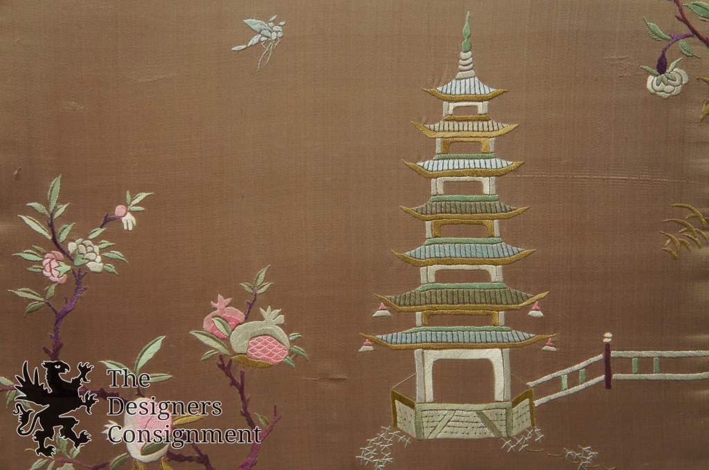 Oriental Style Asian Silk Tapestry Landscape Pagoda Fence Flowers Butterfly 222925708509