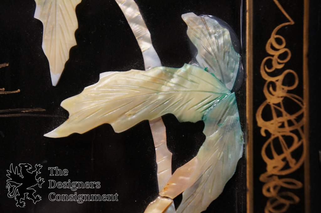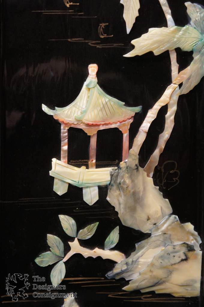 Vintage Mother of Pearl Carved Landscape Scenes Asian Seascape Lacquered Frames 232735284202