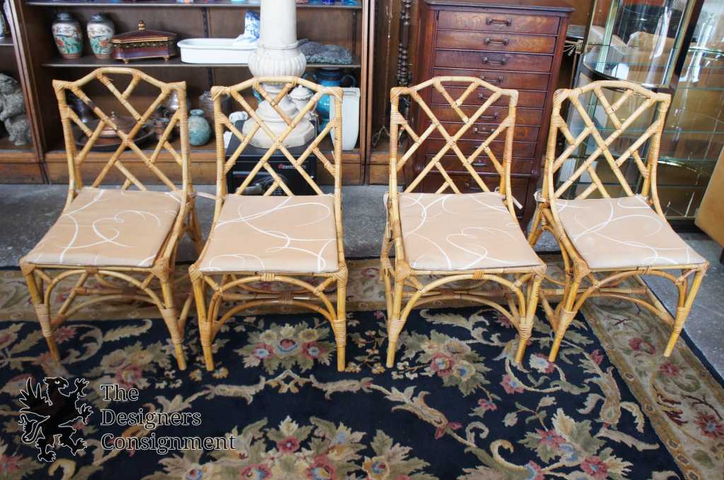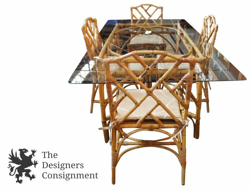 Hollywood Regency/ Chinese Chippendale Bamboo & Rattan Dining Room Set.