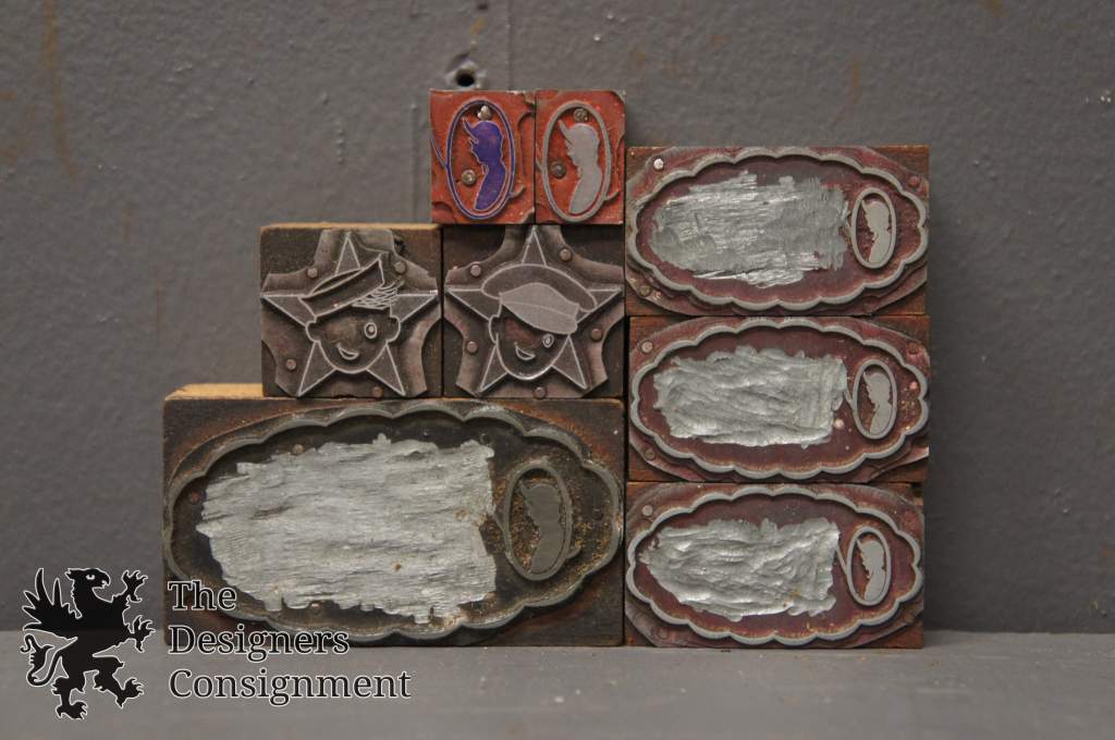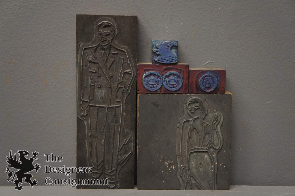 Lot of 45 Vintage Advertising Metal Stamps Copper Plates & Re Inkable Stamp Pad