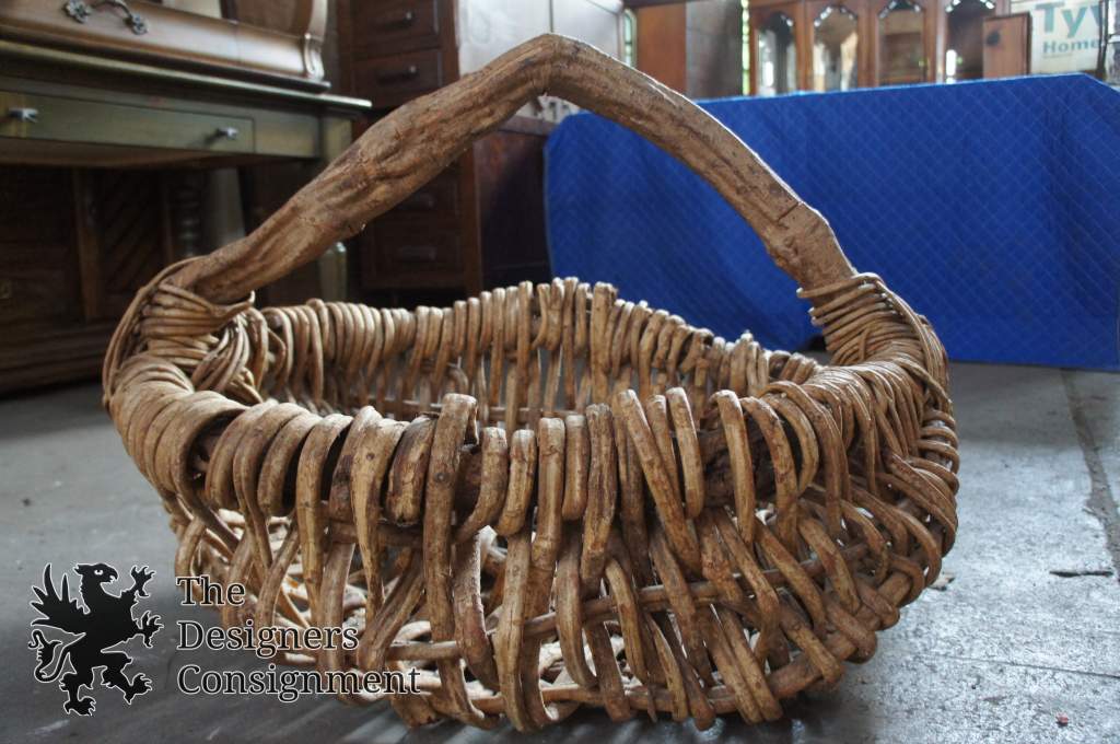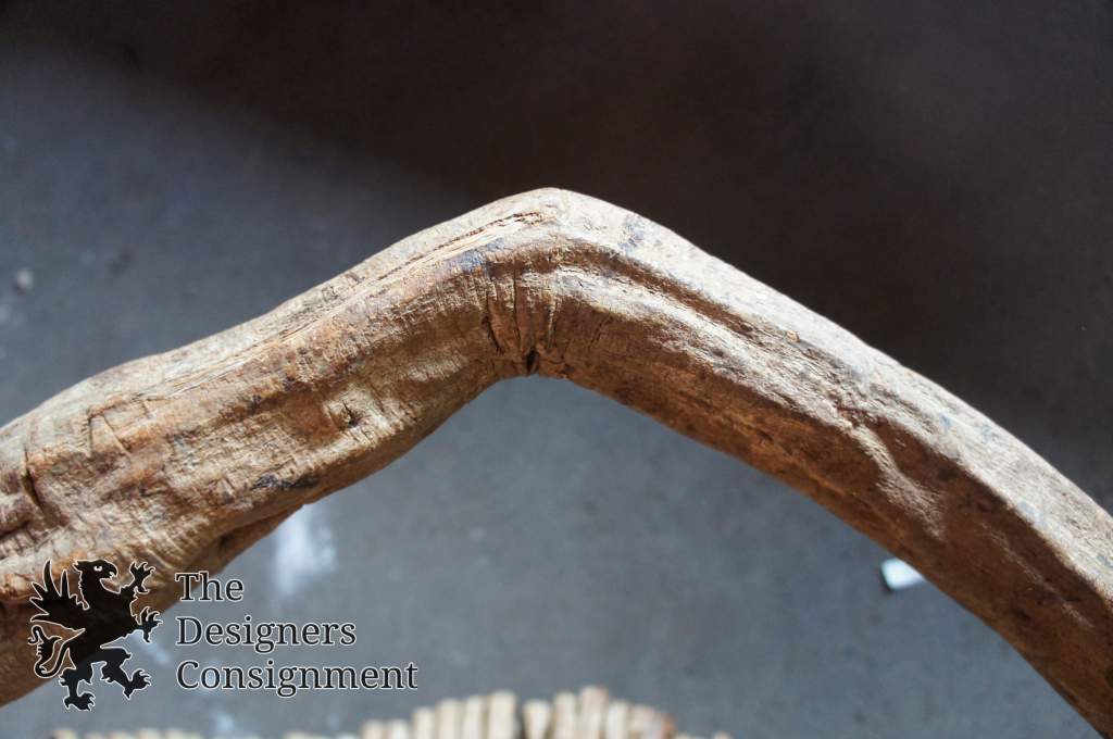 Vintage Primitive Hand Woven Basket with Branch Handle Cornucopia Harvest