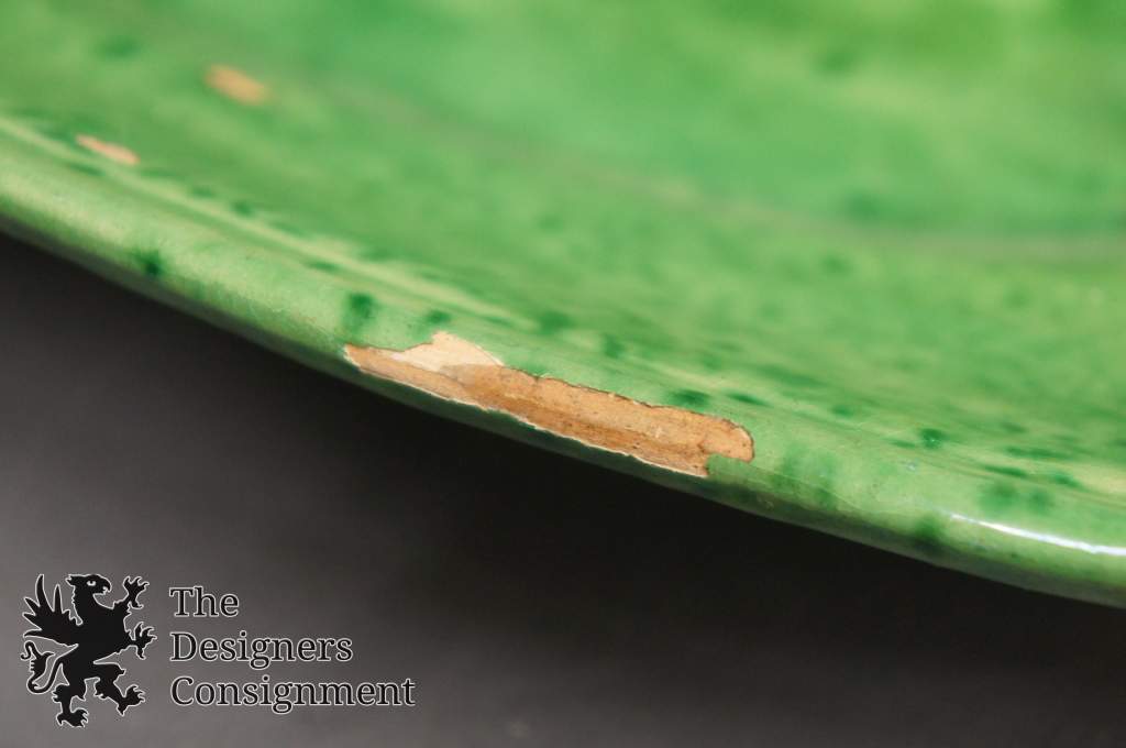 25" Green Ceramic Serving Platter Hand Made France Elliptical Oval Centerpiece