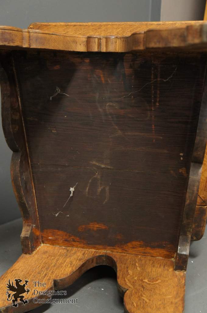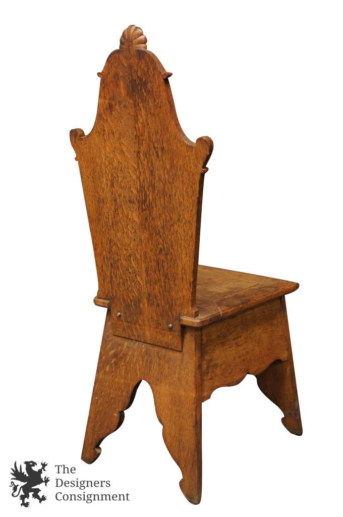 Quartersawn Oak Arts + Crafts Chair with flip up seat. Carved and scalloped back. A great addition to any setting. Willing to discount if local.