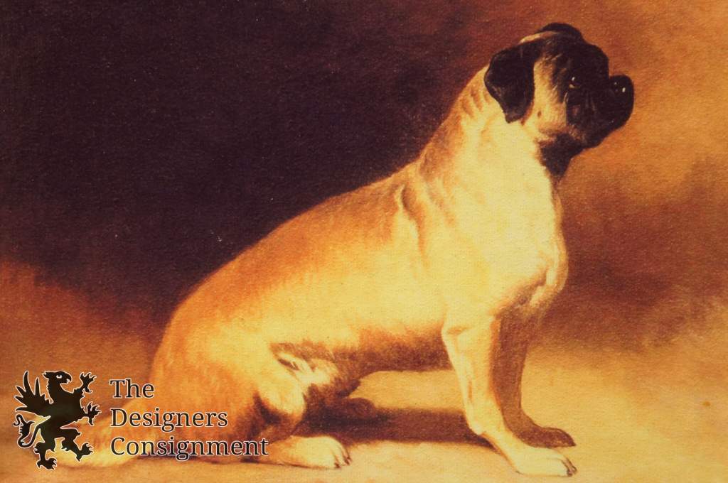 2 Dog Canine Lithograph Prints Pair on Board Pug Black Tan Indoors Outdoors