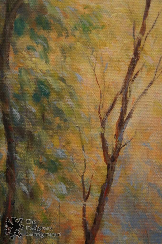 A beautiful landscape showing a view along a stream through the woods in the dead of winter. Signed D. Fischer. Amazing color and attention to detail.