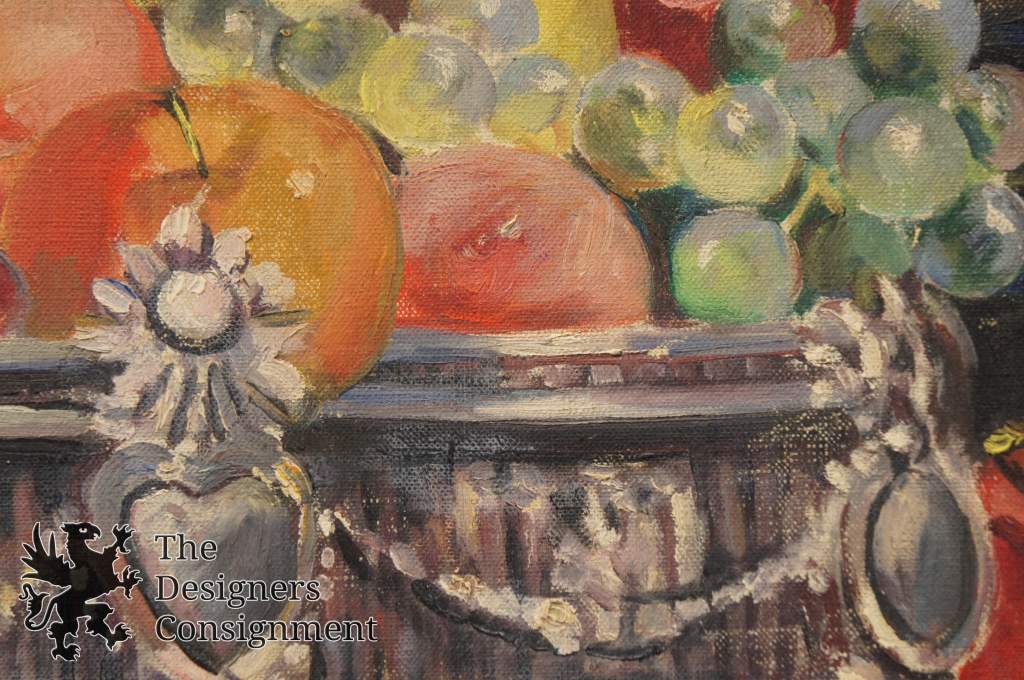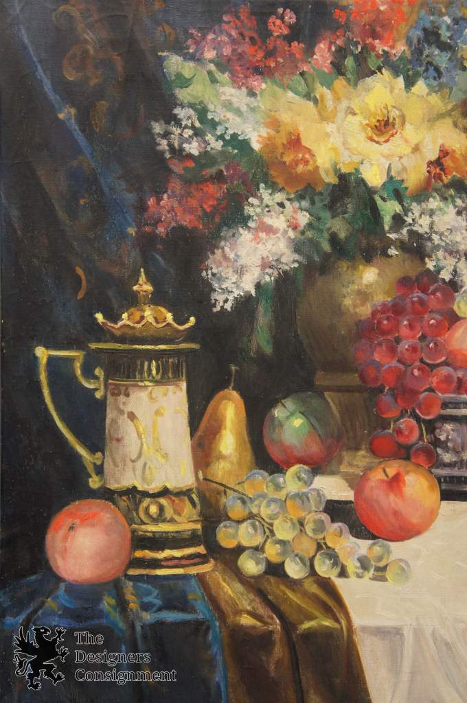 Realist Oil Painting Still Life Signed Paris Yla Table Fruit Flowers Vessels